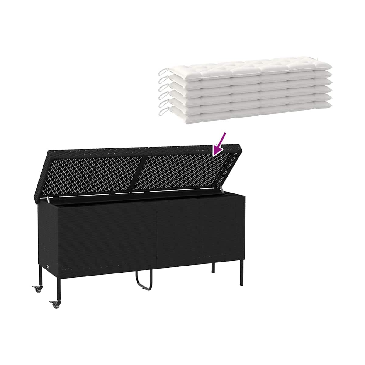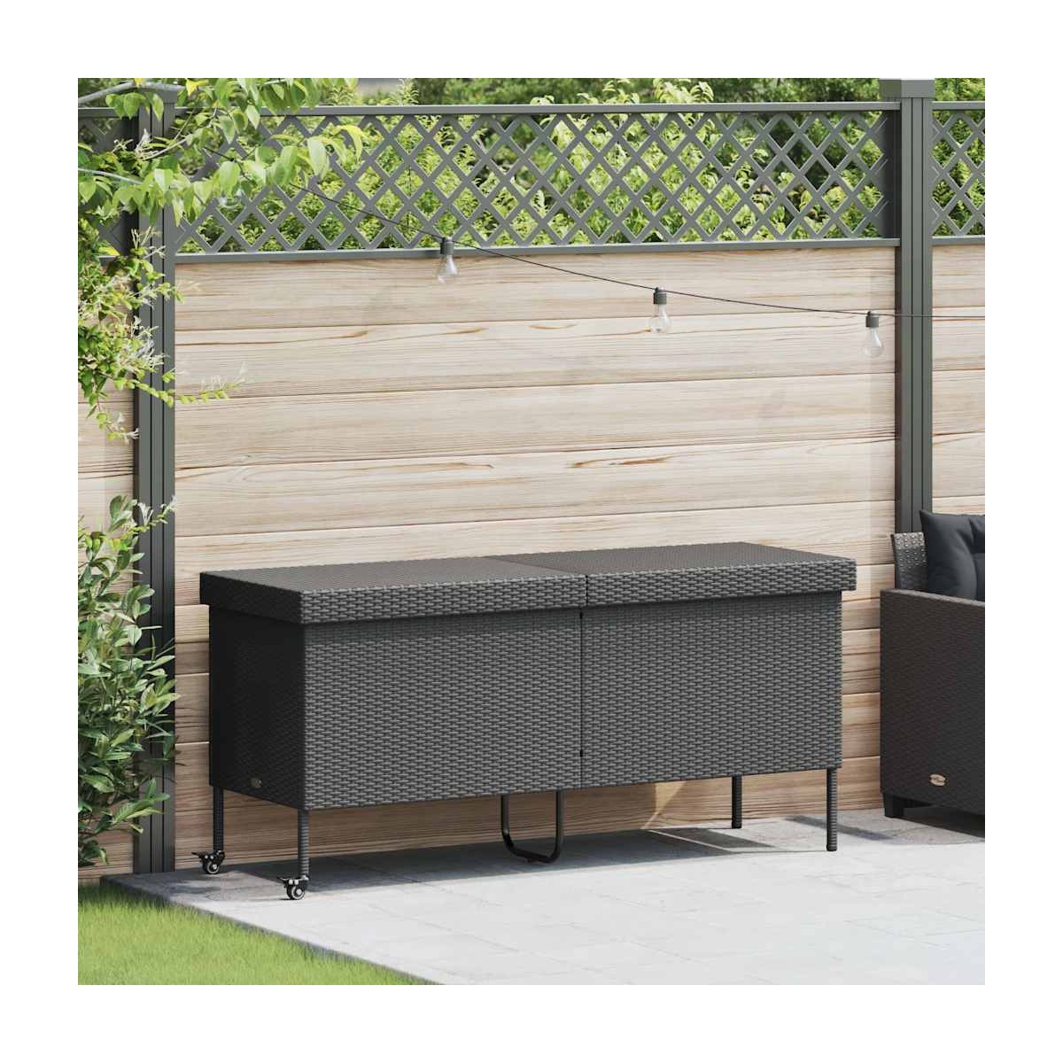 Esta caja de almacenamiento de jardín es perfecta para mantener los cojines de sus muebles de exterior, suministros de jardinería, toallas de piscina y otros artículos organizados y fácilmente accesibles. Material duradero: El ratán sintético, también conocido como ratán sintético, es un material sintético resistente y de bajo mantenimiento que se parece al ratán natural. Es ligero, fácil de limpiar y se usa comúnmente para muebles de exterior debido a su durabilidad y propiedades resistentes a la intemperie.Estructura robusta y estable: La estructura de acero con recubrimiento en polvo es fuerte, estable, duradero y resistente a la corrosión y a las inclemencias del tiempo, lo que garantiza un rendimiento duradero.Fácil de mover: esta caja de almacenamiento para exteriores cuenta con dos ruedas con frenos, lo que permite una reubicación sin esfuerzo a cualquier ubicación deseada mientras se bloquea de forma segura en su lugar para un mejor control y seguridad. Además el asa facilita su transporte.Seguro y fácil de abrir y cerrar: El resorte de gas facilita la apertura de la tapa y evita que se cierre de golpe o atrape los dedos.Función de almacenamiento: Los muebles de jardín cuentan con un espacio de almacenamiento debajo, equipado con una bolsa resistente al agua para guardar cojines, juguetes y otros artículos. La bolsa interior se puede fijar de forma segura al asiento con cierres de gancho y bucle, lo que garantiza la estabilidad y evita el movimiento. Información útil:Para asegurarte de que tus muebles de exterior se mantengan hermosos, recomendamos protegerlos con una funda impermeable.
