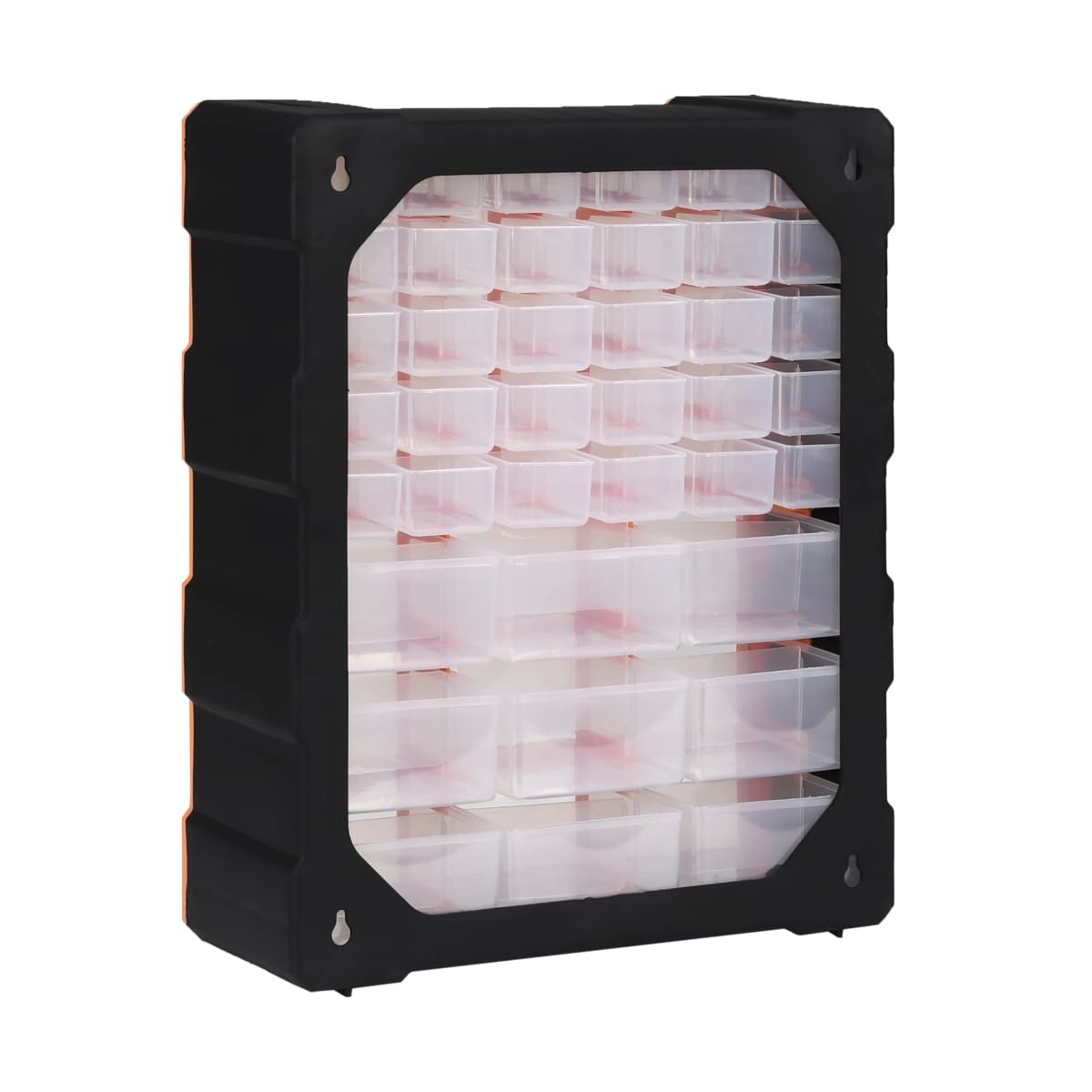 Este imprescindible organizador de varios cajones, con un total de 39 cajones, está diseñado para almacenar de forma ordenada una amplia variedad de artículos. También se puede utilizar como caja de costura o de clavos. Esta unidad de almacenamiento contiene 30 cajones pequeños y 9 cajones medianos para satisfacer diferentes necesidades. Mantiene las herramientas manuales y accesorios como tornillos, organizados y al alcance. El armario de herramientas está fabricado en plástico resistente a los golpes, que es a la vez duradero y estable. Los cajones están hechos de plástico transparente para que puedas identificar rápidamente el contenido. Esta caja de manualidades es ideal para almacenar tuercas, pernos, tornillos, clavos, fijaciones generales y componentes. Este artículo se puede montar en la pared y también se puede utilizar individualmente como organizador de herramientas.