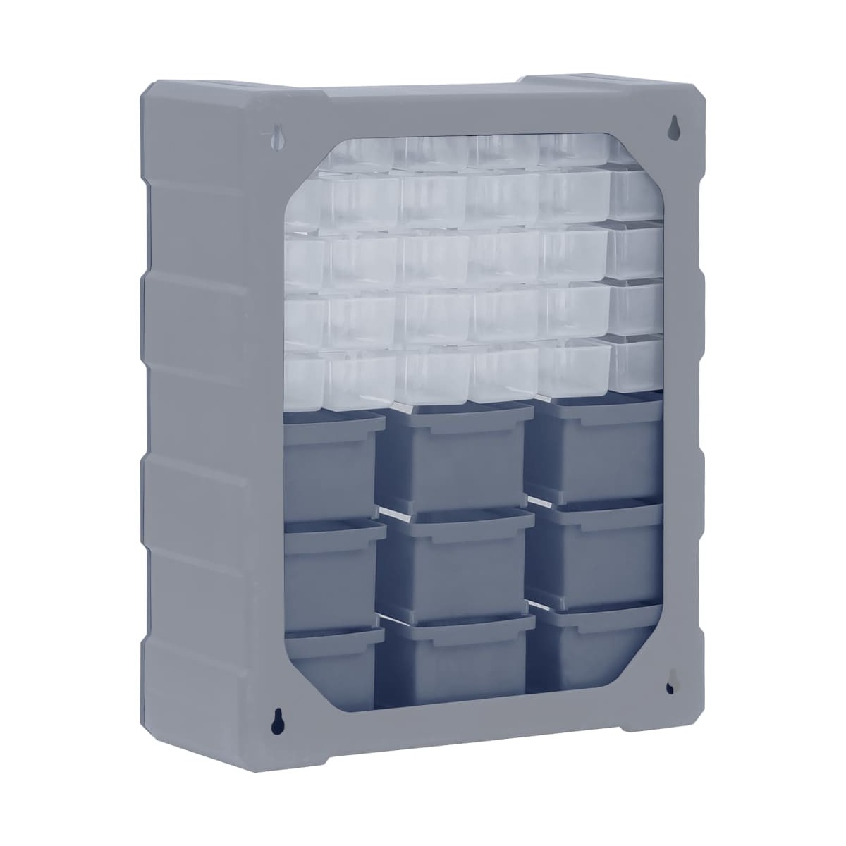 Este imprescindible organizador de varios cajones, con un total de 39 cajones, está diseñado para almacenar de forma ordenada una amplia variedad de artículos. También se puede utilizar como caja de costura o de clavos. Esta unidad de almacenamiento contiene 30 cajones pequeños y 9 cajones abiertos para satisfacer diferentes necesidades. Mantiene las herramientas manuales y accesorios como tornillos, organizados y al alcance. El armario de herramientas está fabricado en plástico resistente a los golpes, que es a la vez duradero y estable. Los cajones están hechos de plástico transparente para que puedas identificar rápidamente el contenido. Esta caja para manualidades es ideal para almacenar tuercas, pernos, tornillos, clavos, fijaciones generales y componentes. Este artículo se puede montar en la pared y también se puede utilizar individualmente como organizador de herramientas.