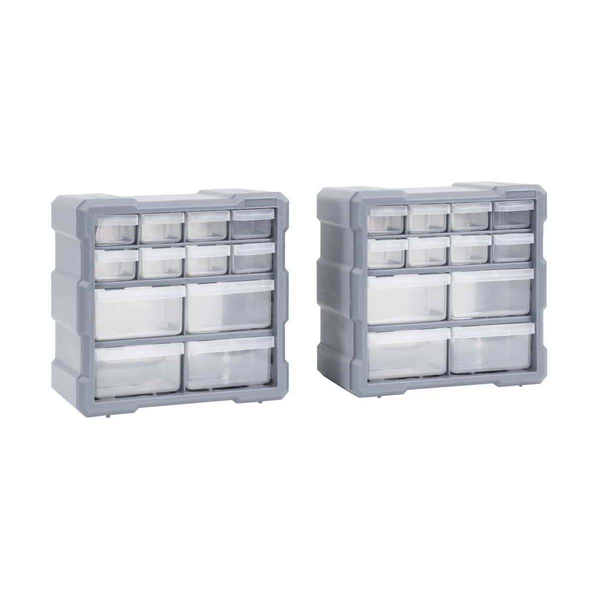 Estos imprescindibles organizadores de cajones múltiples con un total de 24 cajones están diseñados para almacenar ordenadamente una amplia variedad de artículos. También se puede utilizar como caja de costura o de clavos. Cada unidad de almacenamiento contiene 8 cajones pequeños y 4 cajones medianos para satisfacer diferentes necesidades. Mantiene las herramientas manuales y accesorios como tornillos, organizados y al alcance. El armario de herramientas está fabricado en plástico resistente a los golpes, que es a la vez duradero y estable. Los cajones están hechos de plástico transparente para que puedas identificar rápidamente el contenido. Esta caja de manualidades es ideal para almacenar tuercas, pernos, tornillos, clavos, fijaciones generales y componentes. Este artículo se puede montar en la pared y también se puede utilizar individualmente como organizador de herramientas.