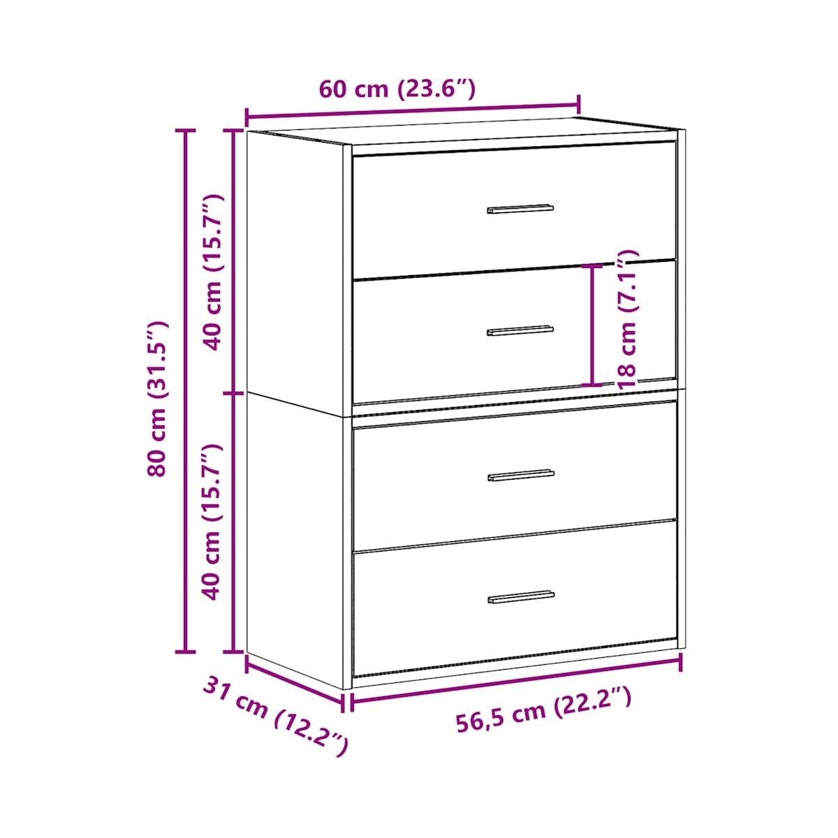- Dimensiones del cajón (cada uno): 56,5 x 23,5 x 18 cm (ancho x profndo x alto)