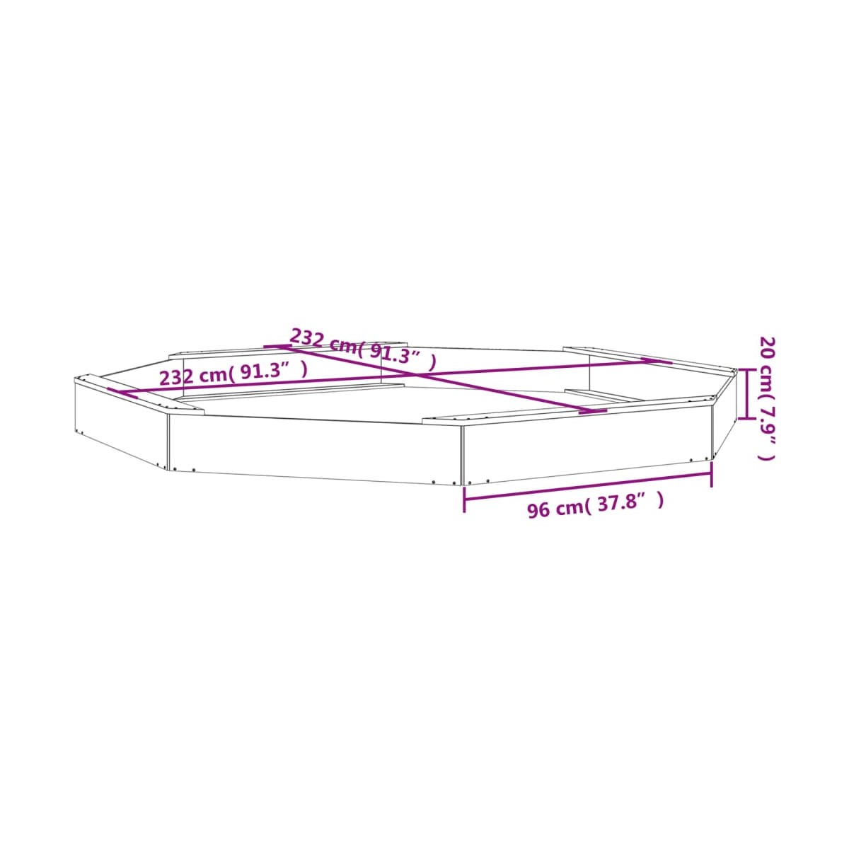 - Dimensiones: 232 x 232 x 20 cm (largo x ancho x alto)