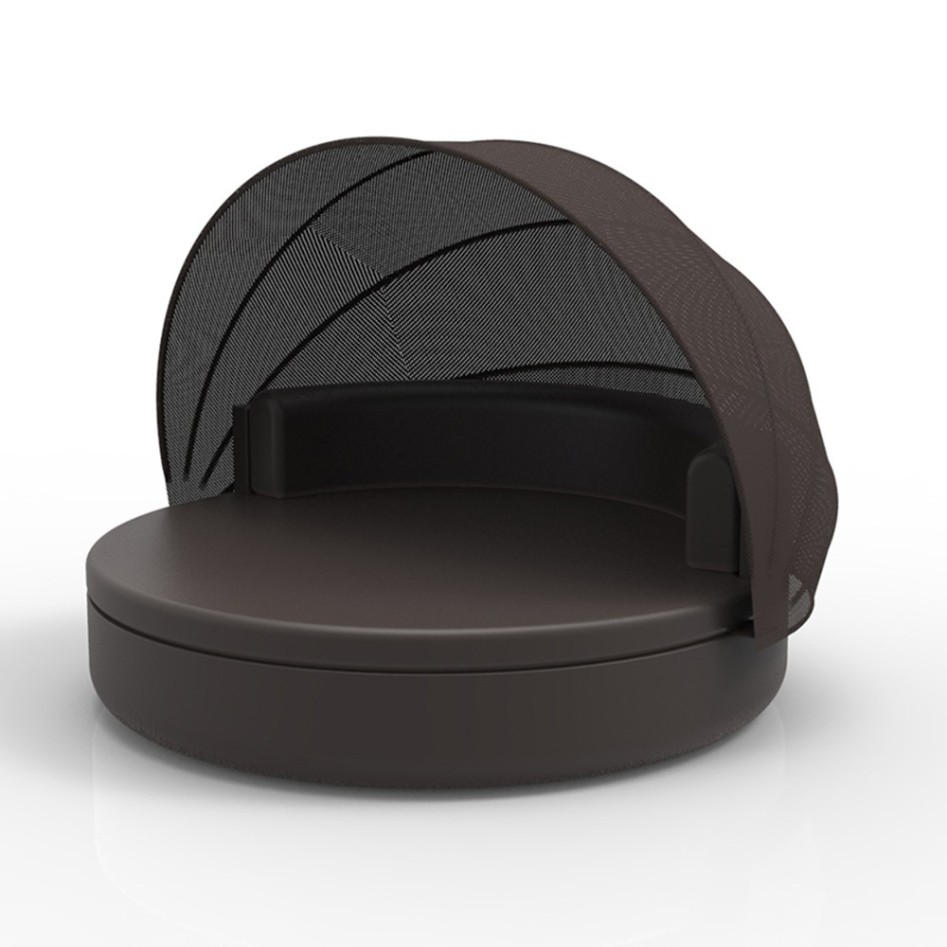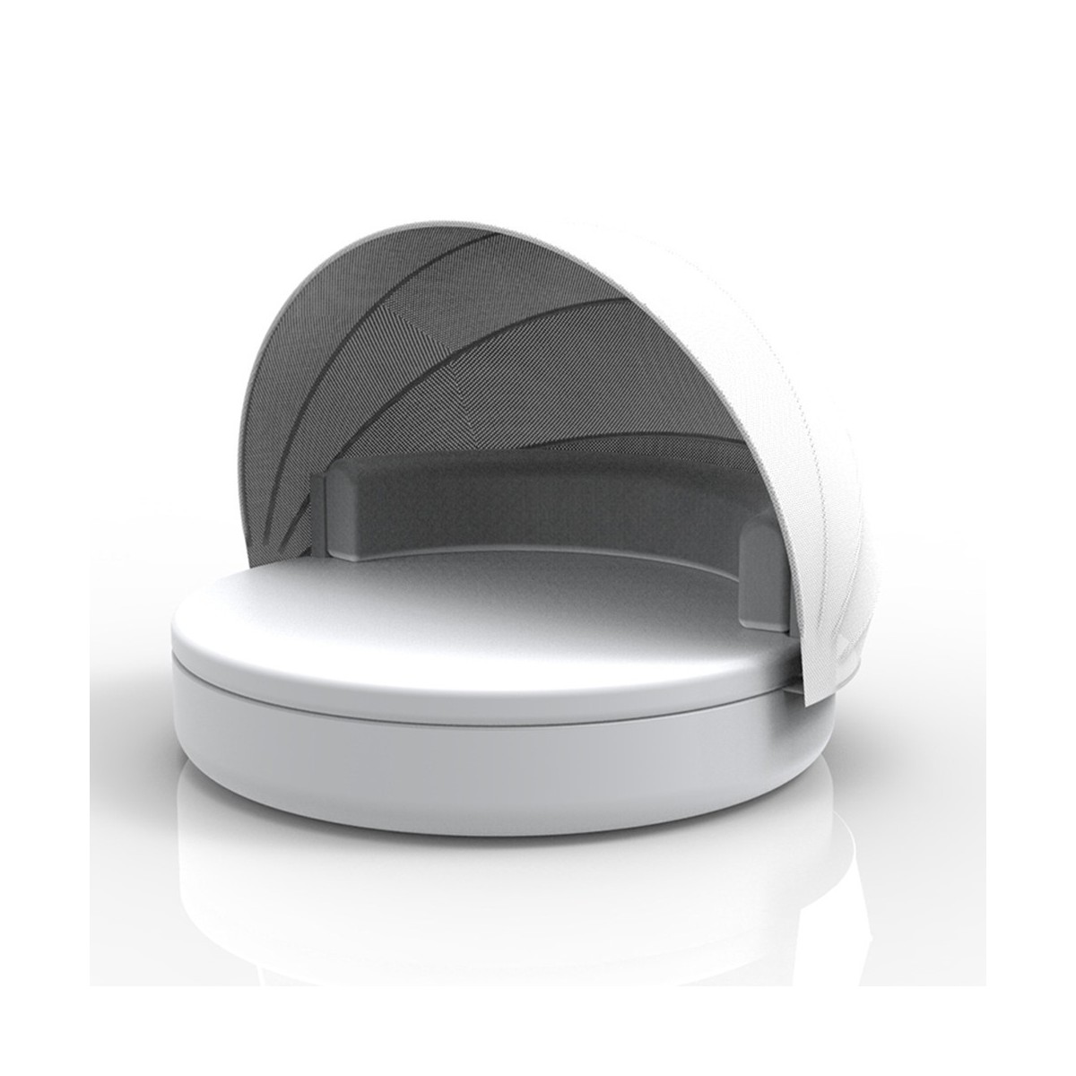 Cama redonda con cabezal fijo y parasol plegable, modelo Ulm Daybed, base giratoria 360º, colección Ulm de Vondom