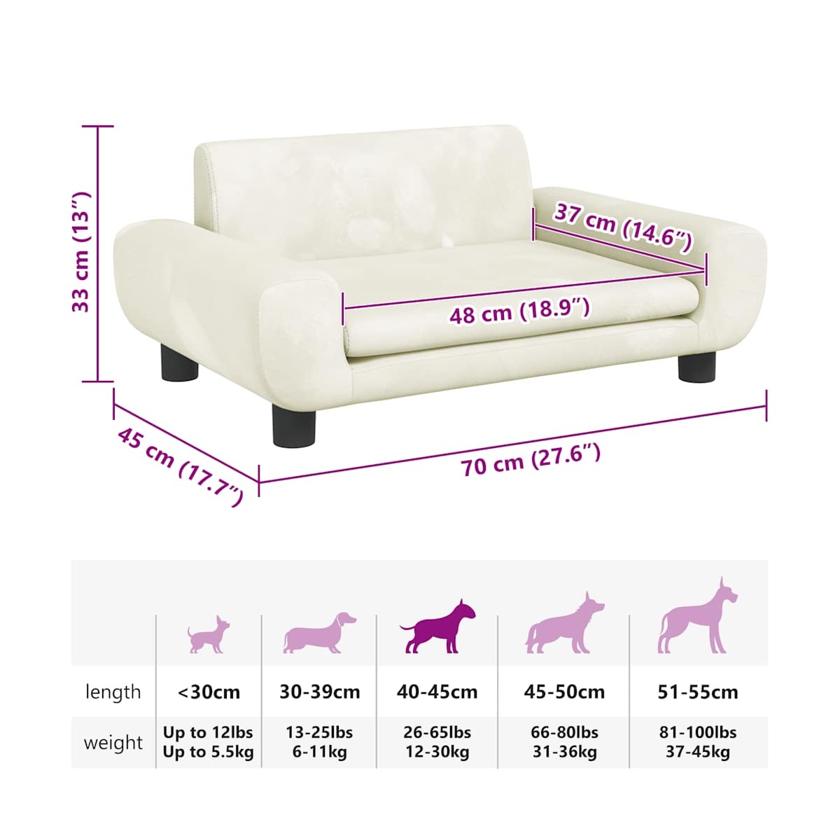 ¡Dale a tu amigo peludo un lugar cálido y cómodo para relajarse con esta sofá para perros! Material cómodo y suave: El sofá para mascotas está acolchado con espuma gruesa y suave y cubierto de terciopelo, que brinda suficiente apoyo y comodidad superior para que tu mascota adorable descanse en él.Estructura robusta y duradera: El marco de madera maciza de pino garantiza la robustez y durabilidad del sofá para perros. Las cuatro patas también añaden estabilidad adicional.Diseño elegante: Este sofá para perros combina perfectamente con cualquier tema de decoración y es un gran complemento para tu salón o dormitorio. Nota:Por favor, mide la longitud del cuerpo de tu mascota antes de comprar.