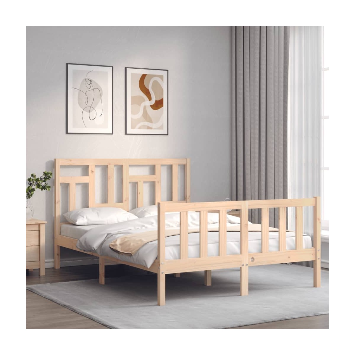 ¡Disfruta de una buena noche de sueño en esta estructura de cama de madera! Es un aporte práctico y decorativo para la casa. Material duradero: La madera maciza de pino es un hermoso material natural. La madera de pino tiene vetas rectas, y los nudos dan al material su distintivo aspecto rústico. Hecha de madera maciza de pino, esta cama es resistente y duradera.Listones de madera contrachapada: Los listones de madera contrachapada ofrecen una buena distribución del peso, lo que garantiza el tan necesario soporte y la transpirabilidad del colchón.Cabecero y estribo de cama útiles: El cabecero y el estribo de la cama de madera mantienen el colchón en su lugar. Además, la cabecera te brinda un excelente soporte para la espalda mientras estás sentado leyendo o mirando la televisión. Información útil:El colchón no está incluido con la cama. Disponemos de una variada selección de colchones. Puedes echar un vistazo a nuestra tienda para buscar el colchón correspondiente.Algunas piezas del cabecero se empaquetan en las cajas de cartón de la estructura de la cama debido a las limitaciones de espacio.