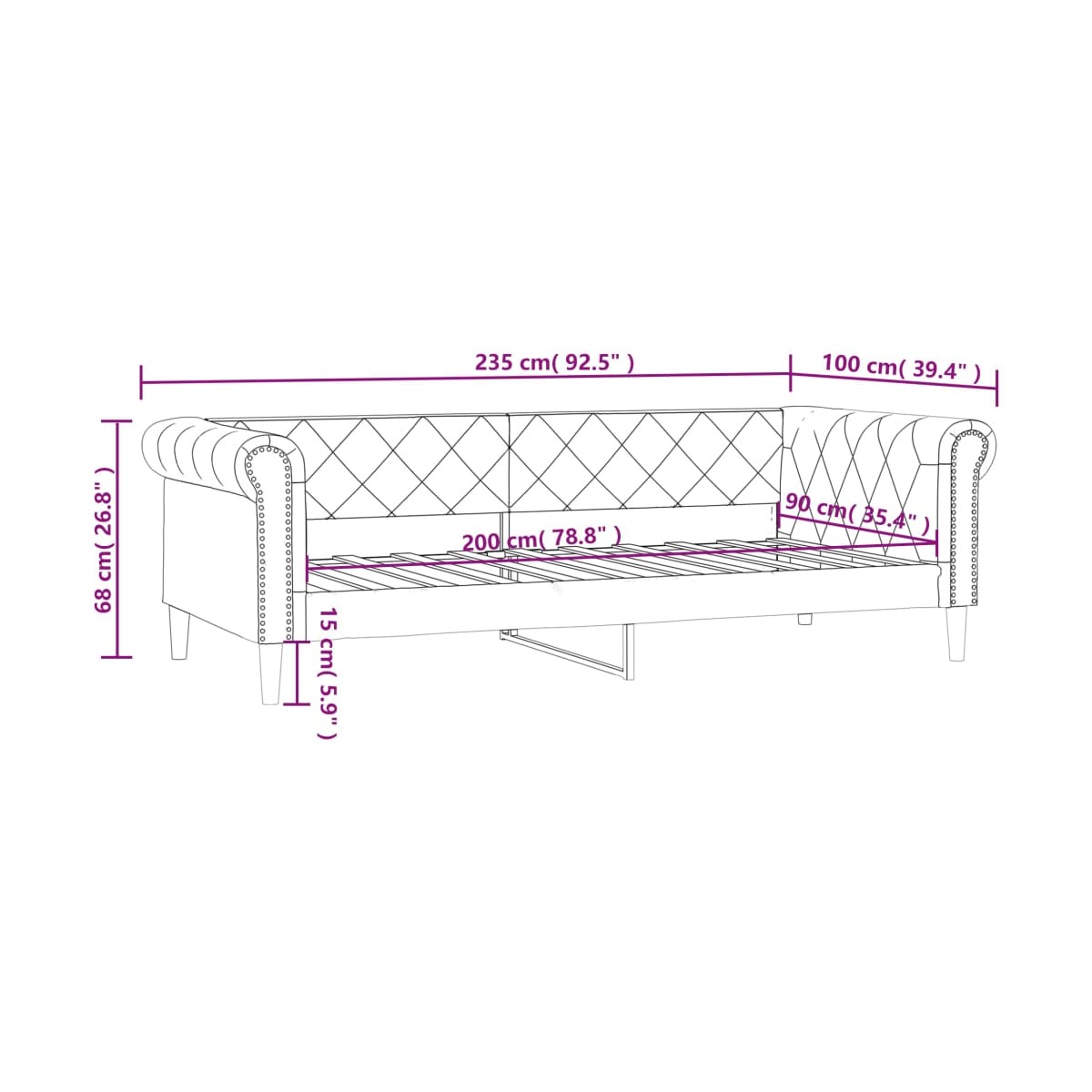 - Dimensiones totales: 235 x 100 x 68 cm (ancho x profundo x alto)