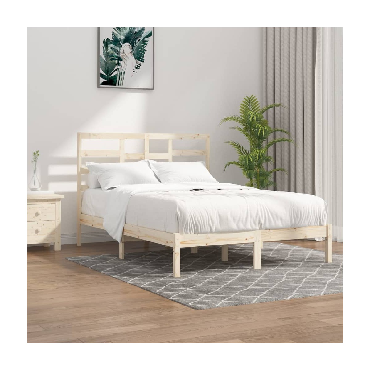 ¡Lleva la ruta moderna a tu dormitorio con esta estructura de cama de madera! Es un aporte práctico y decorativo para tu hogar. Madera maciza premium: La madera de pino maciza es un hermoso material natural. La madera de pino tiene vetas rectas, y los nudos dan al material su distintivo aspecto rústico.Estructura de cama resistente: La estructura de madera garantiza su solidez y estabilidad. Los listones de madera contrachapada proporcionan una buena distribución del peso, lo que garantiza que el colchón se mantenga en tu sitio con cada giro y vuelta del cuerpo mientras duermes.Cabecero cómodo: El clásico cabecero te permite descansar cómodamente mientras lees o ves una película. Información útil:La entrega incluye solo una estructura de cama. El colchón no está incluido. Puedes echar un vistazo en nuestra tienda para buscar colchones a juego.Algunas piezas del cabecero se empaquetan en las cajas de cartón de la estructura de la cama debido a las limitaciones de espacio.Esta estructura de cama es adecuada para un colchón de 135 x 190 cm (4FT6 doble).
