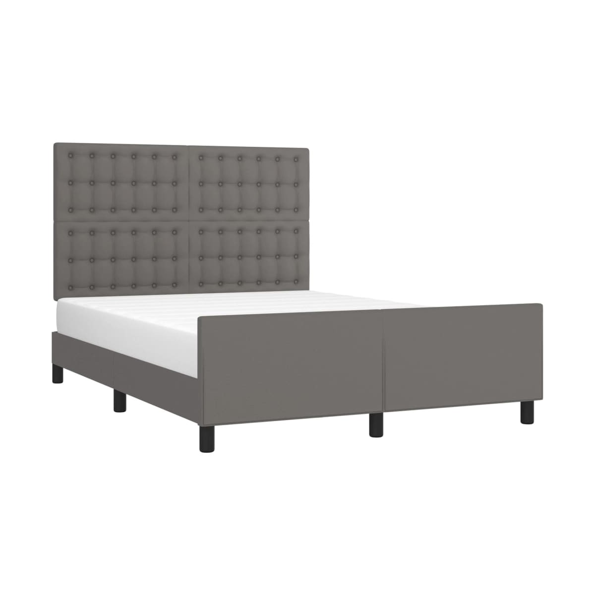 ¡Consigue un sueño más reparador con esta estructura de cama con cabecero! Es un aporte acogedor para cualquier dormitorio. Material duradero: El cuero sintético de primera calidad es un material muy duradero. Es resistente a las manchas, por lo que es fácil de limpiar con un paño húmedo. Además, la superficie lisa da un aspecto lujoso y la belleza del cuero auténtico.Altura regulable: El cabecero de la cama es ajustable en altura según tus preferencias.Patas de apoyo: La cama se apoya en patas robustas, que garantizan su estabilidad, seguridad y firmeza.Listones robustos: Los listones de madera contrachapada proporcionan una buena distribución del peso, lo que garantiza que el colchón se mantenga en tu sitio con cada giro y vuelta del cuerpo mientras duermes.Excelente apoyo: El cabecero de la cama te proporciona un excelente apoyo para la espalda mientras estás sentado en la cama para leer o ver la televisión. Nota:La entrega incluye solo una estructura de cama. El colchón no está incluido. Puedes echar un vistazo en nuestra tienda para buscar colchones a juego.Cada producto viene con un manual de montaje en la caja para facilitar el montaje.