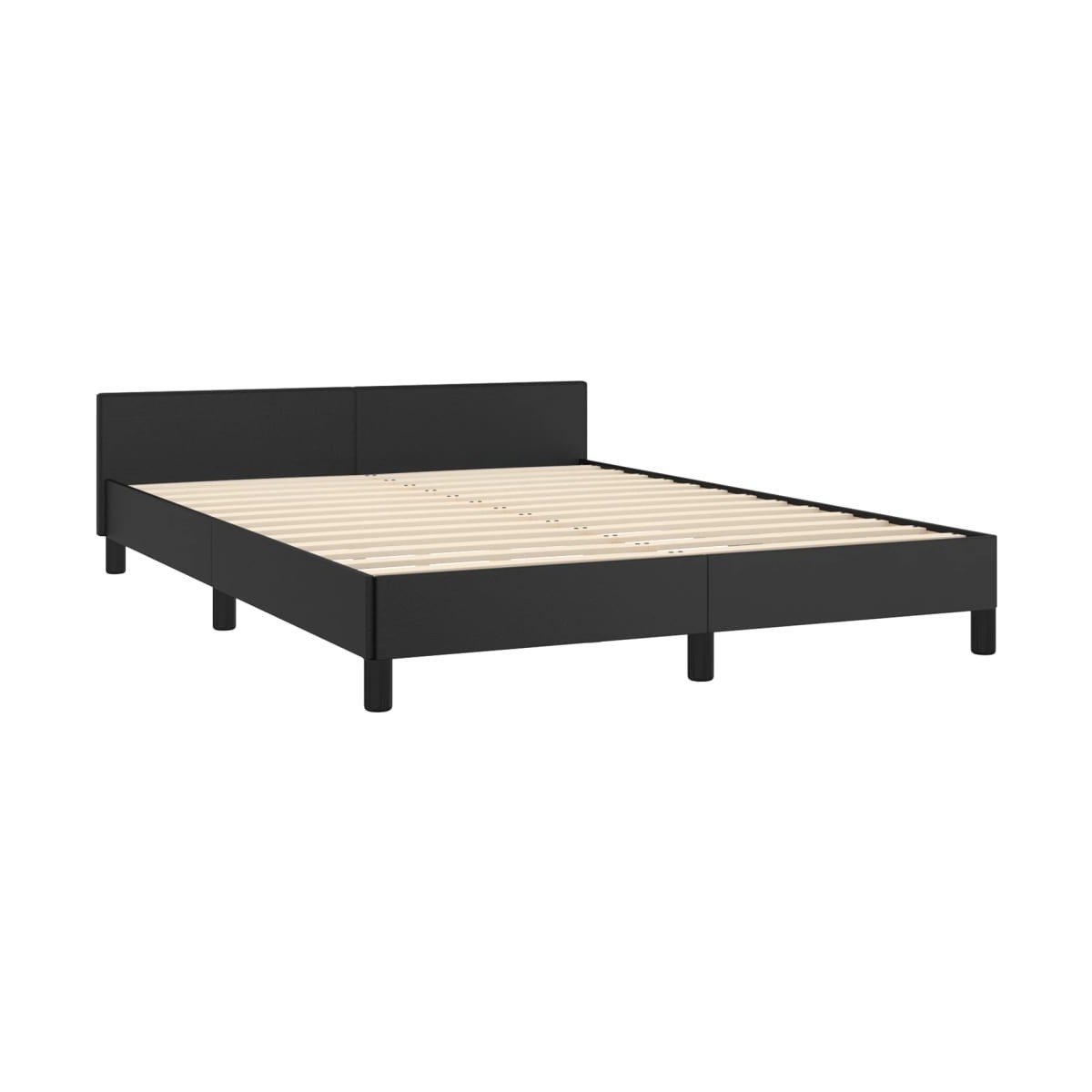 ¡Consigue un sueño más reparador con esta estructura de cama con cabecero! Es un aporte acogedor para cualquier dormitorio. Material duradero: El cuero sintético de primera calidad es un material muy duradero. Es resistente a las manchas, por lo que es fácil de limpiar con un paño húmedo. Además, la superficie lisa da un aspecto lujoso y la belleza del cuero auténtico.Altura regulable: El cabecero de la cama es ajustable en altura según tus preferencias.Patas de apoyo: La cama se apoya en patas robustas, que garantizan su estabilidad, seguridad y firmeza.Listones robustos: Los listones de madera contrachapada proporcionan una buena distribución del peso, lo que garantiza que el colchón se mantenga en tu sitio con cada giro y vuelta del cuerpo mientras duermes.Excelente apoyo: El cabecero de la cama te proporciona un excelente apoyo para la espalda mientras estás sentado en la cama para leer o ver la televisión. Nota:La entrega incluye solo una estructura de cama. El colchón no está incluido. Puedes echar un vistazo en nuestra tienda para buscar colchones a juego.Cada producto viene con un manual de montaje en la caja para facilitar el montaje.