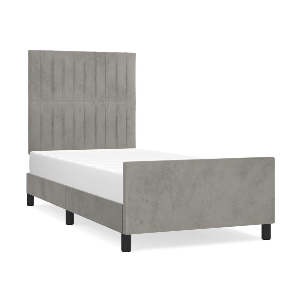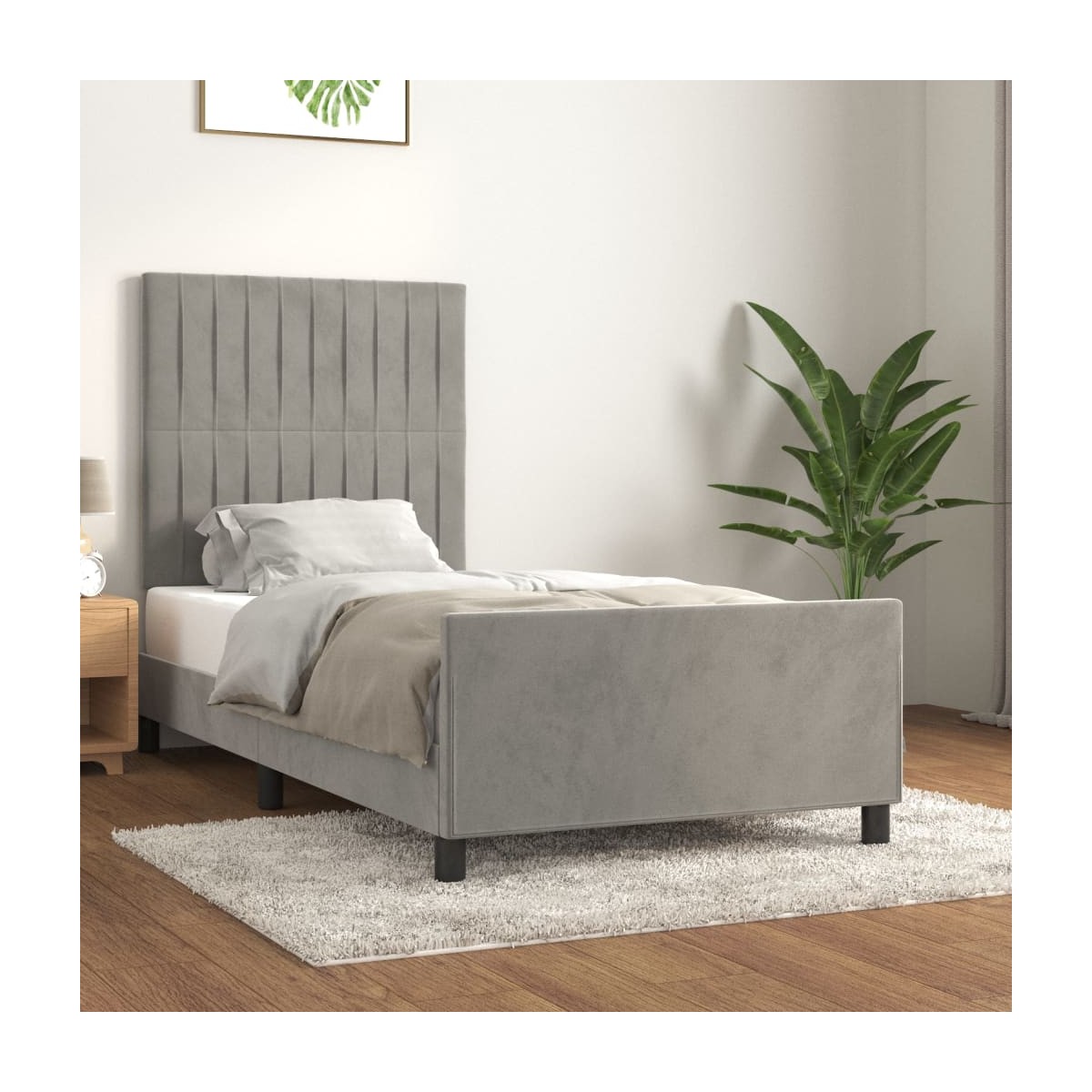 ¡Consigue un sueño más reparador con esta estructura de cama con cabecero! Es un aporte acogedor para cualquier dormitorio. Terciopelo suave: El terciopelo es una tela suave y lujosa, reconocida por su denso pelo de fibras cortadas de forma uniforme que tienen una suave pelusa. La tela de terciopelo posee un característico y suave tacto, lo que hace que sea cómoda al tacto.Altura regulable: El cabecero de la cama es ajustable en altura según tus preferencias.Patas de apoyo: La cama se apoya en patas robustas, que garantizan su estabilidad, seguridad y firmeza.Listones robustos: Los listones de madera contrachapada proporcionan una buena distribución del peso, lo que garantiza que el colchón se mantenga en tu sitio con cada giro y vuelta del cuerpo mientras duermes.Excelente apoyo: El cabecero de la cama te proporciona un excelente apoyo para la espalda mientras estás sentado en la cama para leer o ver la televisión. Nota:La entrega incluye solo una estructura de cama. El colchón no está incluido. Puedes echar un vistazo en nuestra tienda para buscar colchones a juego.Cada producto viene con un manual de montaje en la caja para facilitar el montaje.