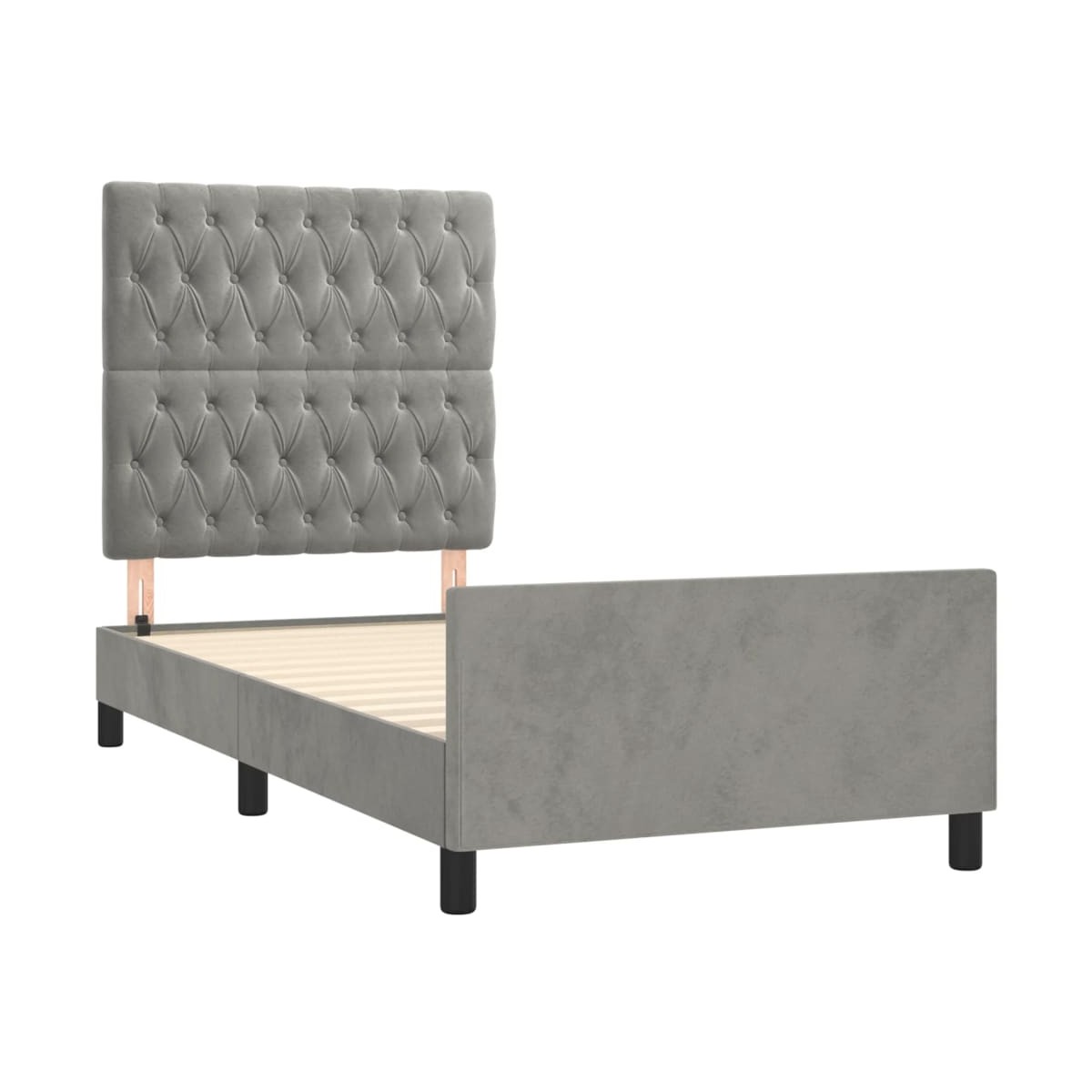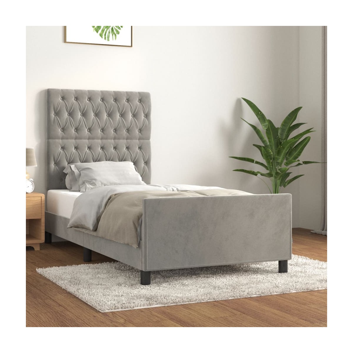 ¡Consigue un sueño más reparador con esta estructura de cama con cabecero! Es un aporte acogedor para cualquier dormitorio. Terciopelo suave: El terciopelo es una tela suave y lujosa, reconocida por su denso pelo de fibras cortadas de forma uniforme que tienen una suave pelusa. La tela de terciopelo posee un característico y suave tacto, lo que hace que sea cómoda al tacto.Altura regulable: El cabecero de la cama es ajustable en altura según tus preferencias.Patas de apoyo: La cama se apoya en patas robustas, que garantizan su estabilidad, seguridad y firmeza.Listones robustos: Los listones de madera contrachapada proporcionan una buena distribución del peso, lo que garantiza que el colchón se mantenga en tu sitio con cada giro y vuelta del cuerpo mientras duermes.Excelente apoyo: El cabecero de la cama te proporciona un excelente apoyo para la espalda mientras estás sentado en la cama para leer o ver la televisión. Nota:La entrega incluye solo una estructura de cama. El colchón no está incluido. Puedes echar un vistazo en nuestra tienda para buscar colchones a juego.Cada producto viene con un manual de montaje en la caja para facilitar el montaje.