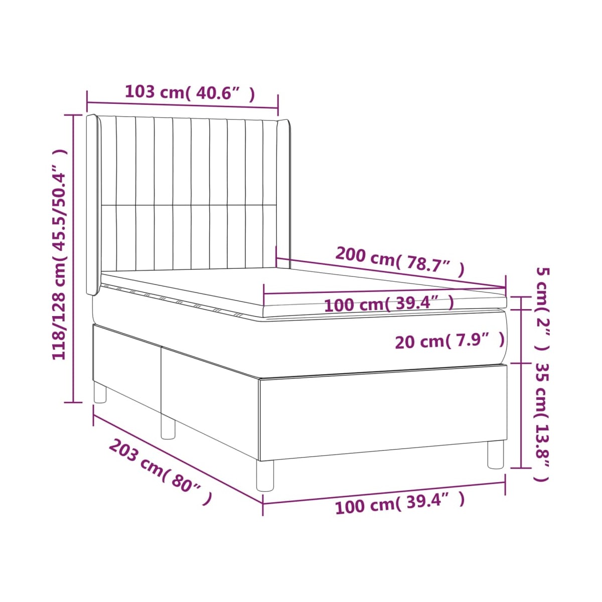 - Dimensiones: 100 x 200 x 20 cm (ancho x largo x alto)
