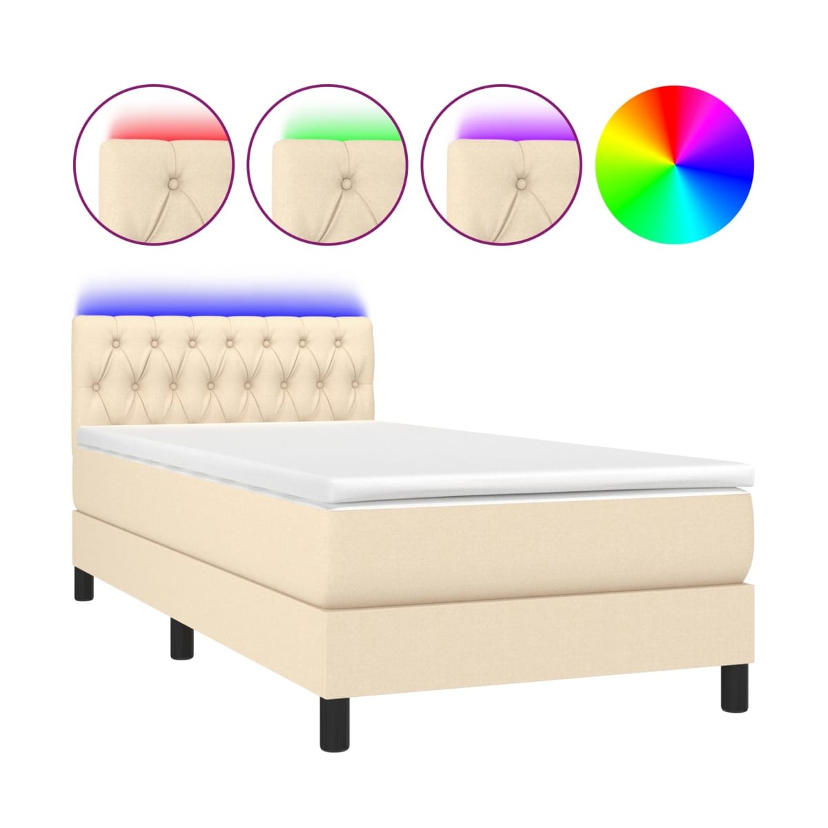 Utiliza esta cama tipo box spring con colchón y luces LED para disfrutar de un sueño reparador. Será el centro de atención del dormitorio. Material de primera calidad: La tela posee un aspecto sencillo y limpio, y es transpirable y duradera.Cabecero práctico: El cabecero de la cama es ajustable en altura según tus preferencias. El cabecero de la cama te proporciona un excelente apoyo para la espalda mientras estás sentado en la cama para leer o ver la televisión.Tira de LED de colores: Alegra la oscuridad con luces LED de colores.Colchón de muelles ensacados: El muelle ensacado individual incorporado es conocido por su altísima calidad, al tiempo que garantiza un alto nivel de durabilidad y adaptabilidad. Puede absorber eficazmente el ruido y los golpes causados por los lanzamientos y los giros.Protector de colchón respetuoso con la piel: El protector de colchón tiene una funda de tejido resistente y respetuoso con la piel, que lo hace suave y confortable. Nota: La lona impermeable no está incluidaPor razones de higiene, el colchón no puede devolverse si se ha quitado o abierto el embalaje.Cada producto viene con un manual de montaje en la caja para facilitar el montaje.Únicamente puedes cortar por la parte con el símbolo de las tijeras y únicamente la parte con el USB seguirá funcionando como antes.El producto tiene un conector USB, pero no se incluye la fuente de alimentación USB de 5 V certificada.