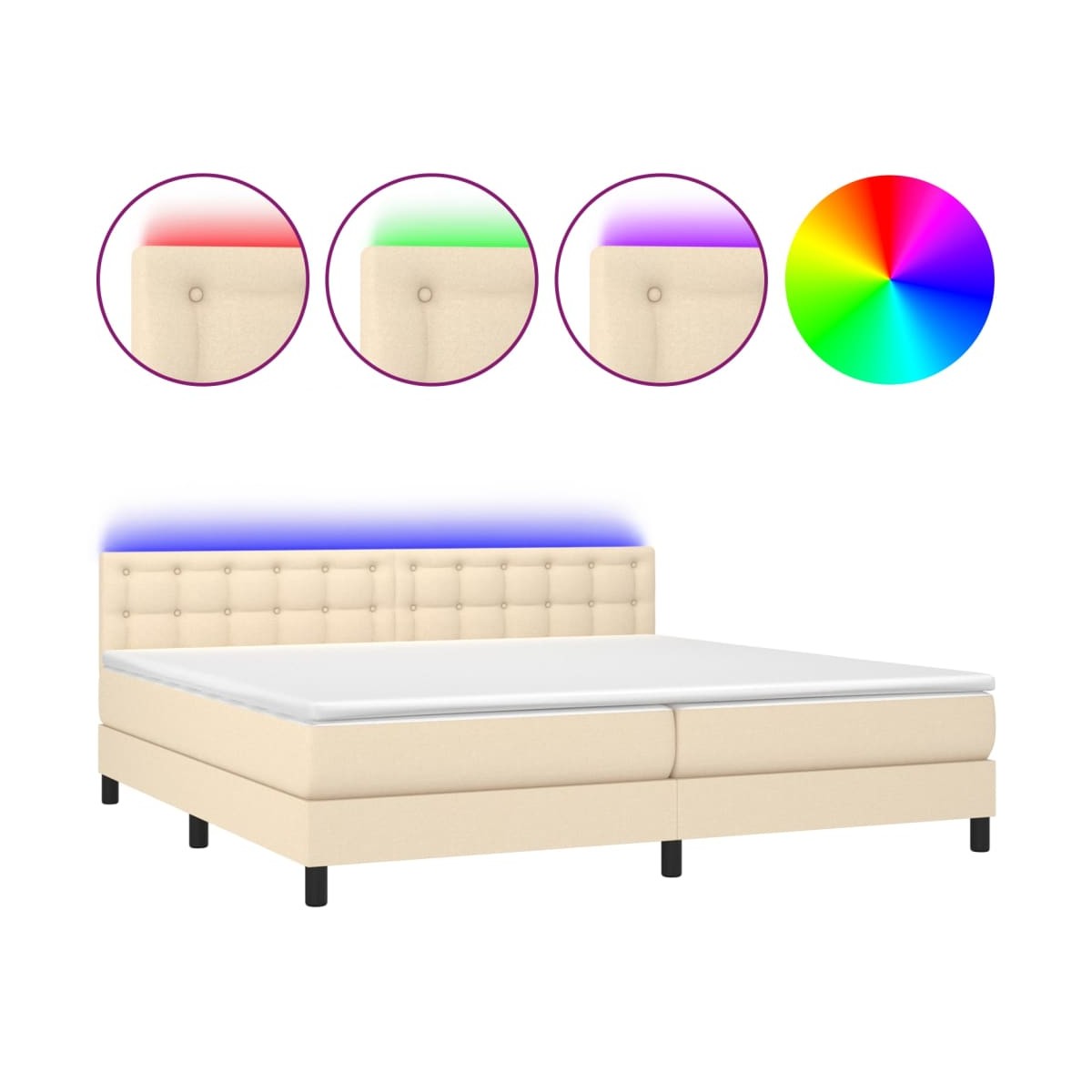 Utiliza esta cama tipo box spring con colchón y luces LED para disfrutar de un sueño reparador. Será el centro de atención del dormitorio. Material de primera calidad: La tela posee un aspecto sencillo y limpio, y es transpirable y duradera.Cabecero práctico: El cabecero de la cama es ajustable en altura según tus preferencias. El cabecero de la cama te proporciona un excelente apoyo para la espalda mientras estás sentado en la cama para leer o ver la televisión.Tira de LED de colores: Alegra la oscuridad con luces LED de colores.Colchón de muelles ensacados: El muelle ensacado individual incorporado es conocido por su altísima calidad, al tiempo que garantiza un alto nivel de durabilidad y adaptabilidad. Puede absorber eficazmente el ruido y los golpes causados por los lanzamientos y los giros.Protector de colchón respetuoso con la piel: El protector de colchón tiene una funda de tejido resistente y respetuoso con la piel, que lo hace suave y confortable. Nota:Por razones de higiene, el colchón no puede devolverse si se ha quitado o abierto el embalaje.Cada producto viene con un manual de montaje en la caja para facilitar el montaje.Únicamente puedes cortar por la parte con el símbolo de las tijeras y únicamente la parte con el USB seguirá funcionando como antes.El producto tiene un conector USB, pero no se incluye la fuente de alimentación USB de 5 V certificada.
