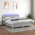 Utiliza esta cama box spring con colchón y LED para disfrutar de un sueño reparador. Es el centro de atención de tu dormitorio. Material de primera calidad: La tela posee un aspecto sencillo y limpio, y es transpirable y duradera.Cabecero práctico: El cabecero de la cama es ajustable en altura según tus preferencias. El cabecero de la cama te proporciona un excelente apoyo para la espalda mientras estás sentado en la cama para leer o ver la televisión.Tira de LED de colores: Alegra la oscuridad con luces LED de colores.Colchón de muelles ensacados: El muelle ensacado individual incorporado es conocido por su altísima calidad, al tiempo que garantiza un alto nivel de durabilidad y adaptabilidad. Puede absorber eficazmente el ruido y los golpes causados por los lanzamientos y los giros.Protector de colchón respetuoso con la piel: El protector de colchón tiene una funda de tejido resistente y respetuoso con la piel, que lo hace suave y confortable. Nota:Por razones de higiene, el colchón no puede devolverse si se ha quitado o abierto el embalaje.Cada producto viene con un manual de montaje en la caja para facilitar el montaje.Únicamente puedes cortar por la parte con el símbolo de las tijeras y únicamente la parte con el USB seguirá funcionando como antes.El producto tiene un conector USB, pero no se incluye la fuente de alimentación USB de 5 V certificada.
