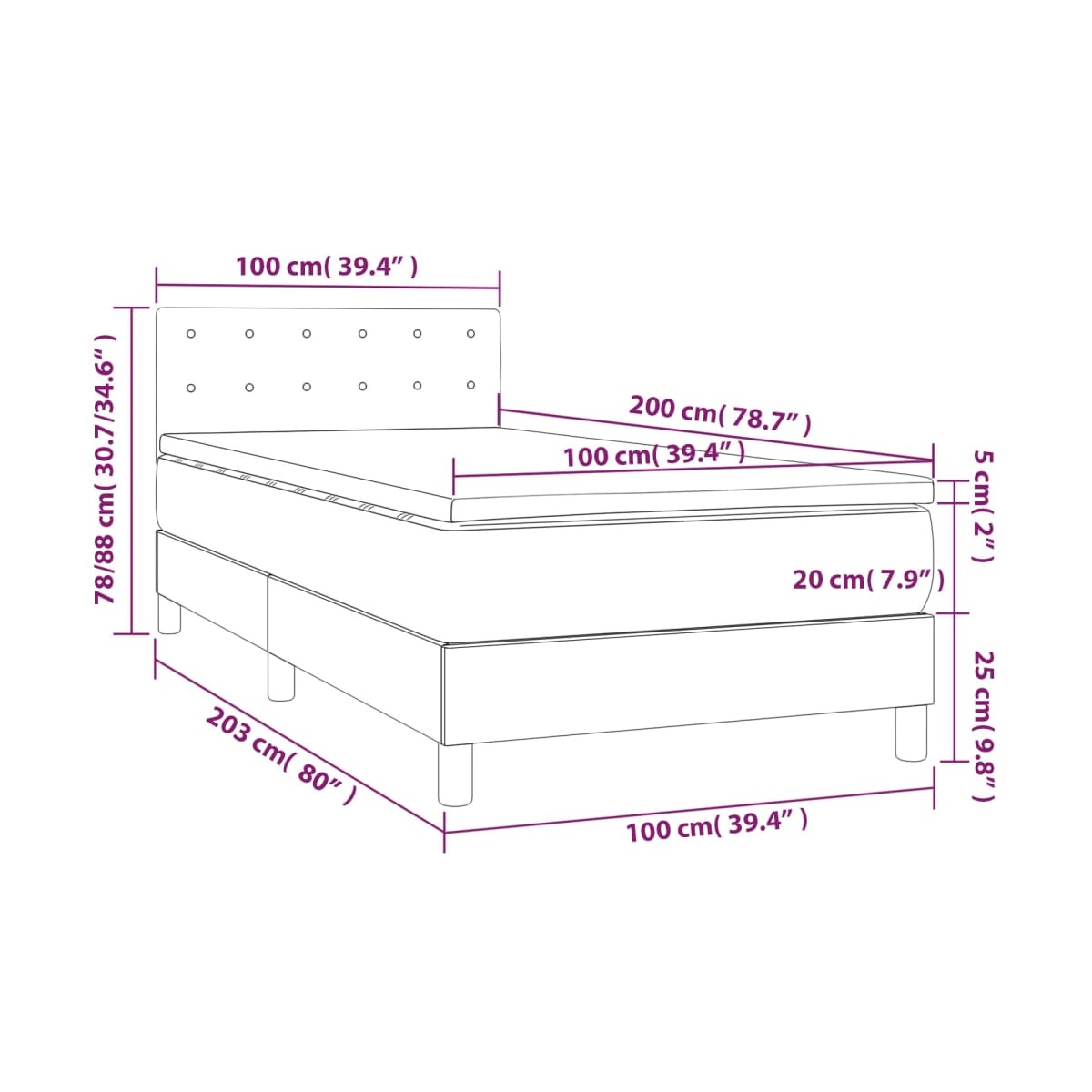 - Dimensiones: 100 x 200 x 20 cm (ancho x largo x alto)