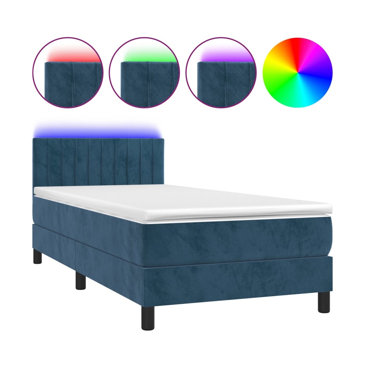 Utiliza esta cama box spring con colchón y LED para disfrutar de un sueño reparador. Es el centro de atención de tu dormitorio. Terciopelo suave: El terciopelo es una tela suave y lujosa, reconocida por su denso pelo de fibras cortadas de forma uniforme que tienen una suave pelusa. La tela de terciopelo posee un característico y suave tacto, lo que hace que sea cómoda al tacto.Cabecero práctico: El cabecero de la cama es ajustable en altura según tus preferencias. El cabecero de la cama te proporciona un excelente apoyo para la espalda mientras estás sentado en la cama para leer o ver la televisión.Tira de LED de colores: Alegra la oscuridad con luces LED de colores.Colchón de muelles ensacados: El muelle ensacado individual incorporado es conocido por su altísima calidad, al tiempo que garantiza un alto nivel de durabilidad y adaptabilidad. Puede absorber eficazmente el ruido y los golpes causados por los lanzamientos y los giros.Protector de colchón respetuoso con la piel: El protector de colchón tiene una funda de tejido resistente y respetuoso con la piel, que lo hace suave y confortable. Nota:Por razones de higiene, el colchón no puede devolverse si se ha quitado o abierto el embalaje.Cada producto viene con un manual de montaje en la caja para facilitar el montaje.Únicamente puedes cortar por la parte con el símbolo de las tijeras y únicamente la parte con el USB seguirá funcionando como antes.El producto tiene un conector USB, pero no se incluye la fuente de alimentación USB de 5 V certificada.