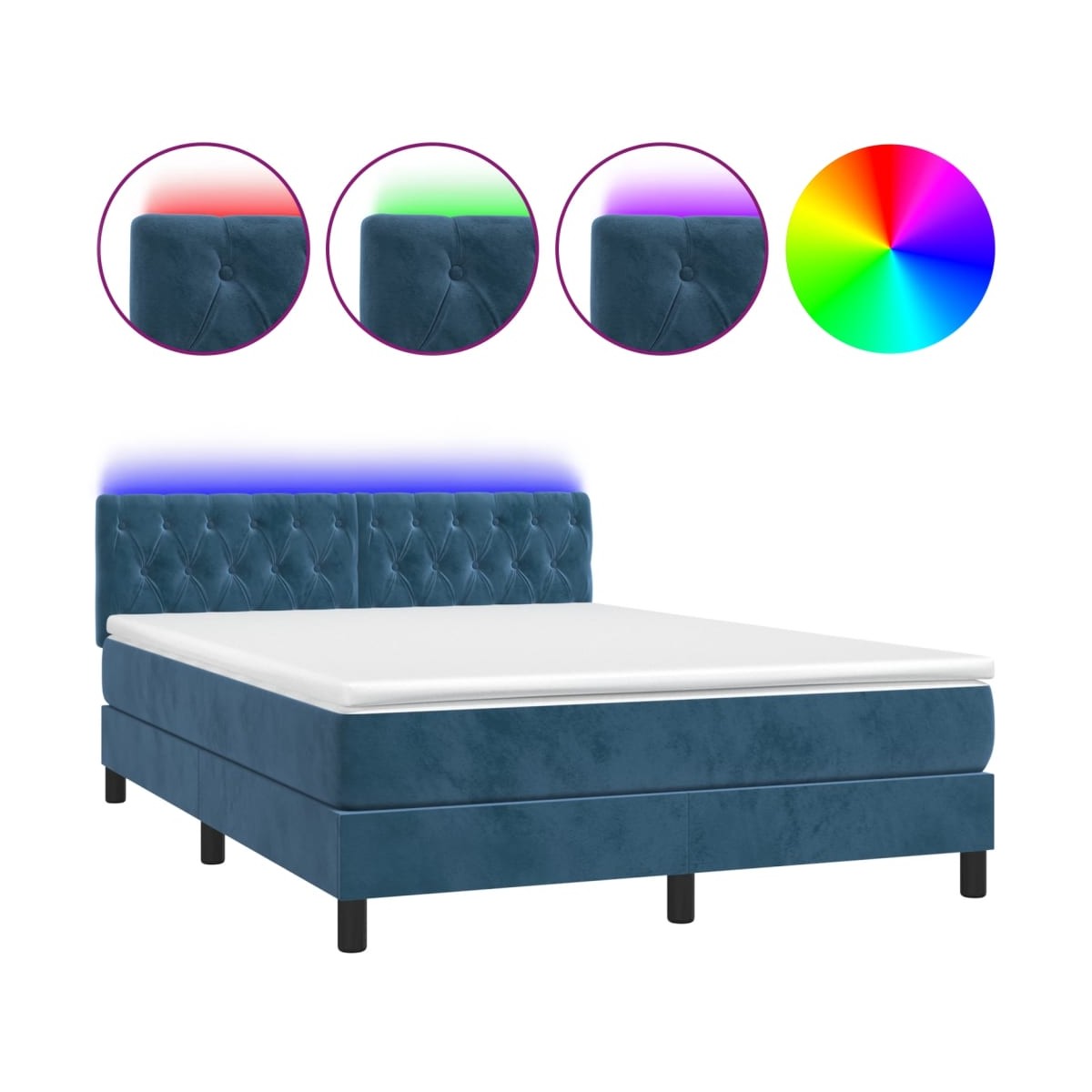 Utiliza esta cama box spring con colchón y LED para disfrutar de un sueño reparador. Es el centro de atención de tu dormitorio. Terciopelo suave: El terciopelo es una tela suave y lujosa, reconocida por su denso pelo de fibras cortadas de forma uniforme que tienen una suave pelusa. La tela de terciopelo posee un característico y suave tacto, lo que hace que sea cómoda al tacto.Cabecero práctico: El cabecero de la cama es ajustable en altura según tus preferencias. El cabecero de la cama te proporciona un excelente apoyo para la espalda mientras estás sentado en la cama para leer o ver la televisión.Tira de LED de colores: Alegra la oscuridad con luces LED de colores.Colchón de muelles ensacados: El muelle ensacado individual incorporado es conocido por su altísima calidad, al tiempo que garantiza un alto nivel de durabilidad y adaptabilidad. Puede absorber eficazmente el ruido y los golpes causados por los lanzamientos y los giros.Protector de colchón respetuoso con la piel: El protector de colchón tiene una funda de tejido resistente y respetuoso con la piel, que lo hace suave y confortable. Nota:Por razones de higiene, el colchón no puede devolverse si se ha quitado o abierto el embalaje.Cada producto viene con un manual de montaje en la caja para facilitar el montaje.Únicamente puedes cortar por la parte con el símbolo de las tijeras y únicamente la parte con el USB seguirá funcionando como antes.El producto tiene un conector USB, pero no se incluye la fuente de alimentación USB de 5 V certificada.