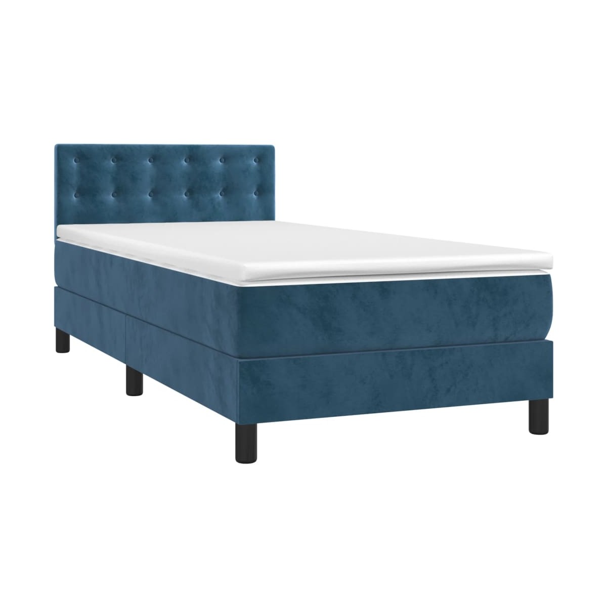Utiliza esta cama box spring con colchón y LED para disfrutar de un sueño reparador. Es el centro de atención de tu dormitorio. Terciopelo suave: El terciopelo es una tela suave y lujosa, reconocida por su denso pelo de fibras cortadas de forma uniforme que tienen una suave pelusa. La tela de terciopelo posee un característico y suave tacto, lo que hace que sea cómoda al tacto.Cabecero práctico: El cabecero de la cama es ajustable en altura según tus preferencias. El cabecero de la cama te proporciona un excelente apoyo para la espalda mientras estás sentado en la cama para leer o ver la televisión.Tira de LED de colores: Alegra la oscuridad con luces LED de colores.Colchón de muelles ensacados: El muelle ensacado individual incorporado es conocido por su altísima calidad, al tiempo que garantiza un alto nivel de durabilidad y adaptabilidad. Puede absorber eficazmente el ruido y los golpes causados por los lanzamientos y los giros.Protector de colchón respetuoso con la piel: El protector de colchón tiene una funda de tejido resistente y respetuoso con la piel, que lo hace suave y confortable. Nota:Por razones de higiene, el colchón no puede devolverse si se ha quitado o abierto el embalaje.Cada producto viene con un manual de montaje en la caja para facilitar el montaje.Únicamente puedes cortar por la parte con el símbolo de las tijeras y únicamente la parte con el USB seguirá funcionando como antes.El producto tiene un conector USB, pero no se incluye la fuente de alimentación USB de 5 V certificada.