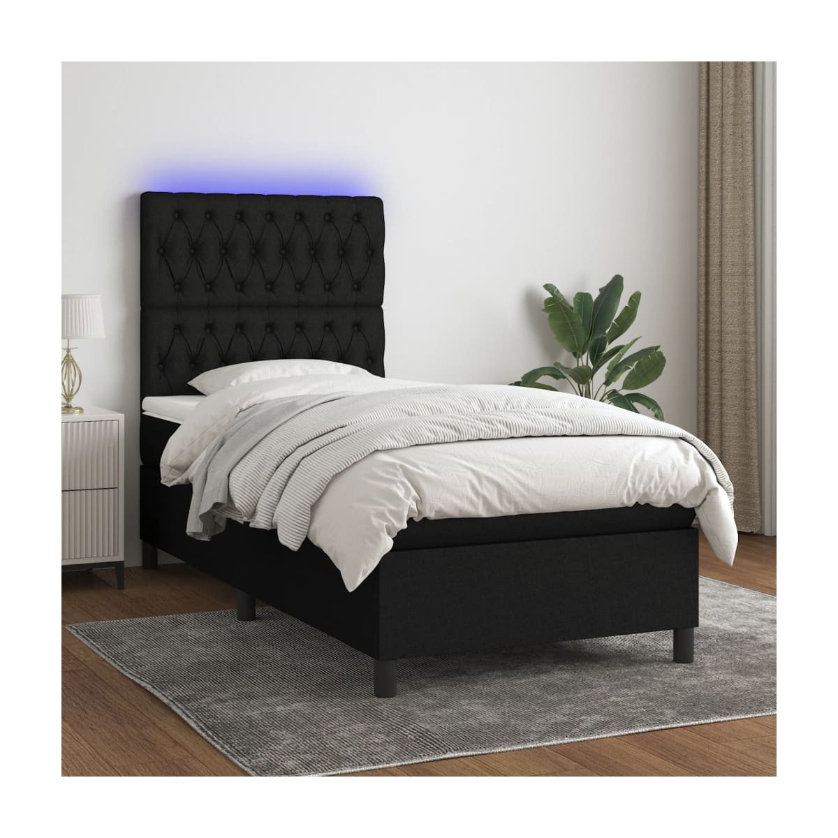 Utiliza esta cama box spring con colchón y LED para disfrutar de un sueño reparador. Es el centro de atención de tu dormitorio. Material de primera calidad: La tela posee un aspecto sencillo y limpio, y es transpirable y duradera.Cabecero práctico: El cabecero de la cama es ajustable en altura según tus preferencias. El cabecero de la cama te proporciona un excelente apoyo para la espalda mientras estás sentado en la cama para leer o ver la televisión.Tira de LED de colores: Alegra la oscuridad con luces LED de colores.Colchón de muelles ensacados: El muelle ensacado individual incorporado es conocido por su altísima calidad, al tiempo que garantiza un alto nivel de durabilidad y adaptabilidad. Puede absorber eficazmente el ruido y los golpes causados por los lanzamientos y los giros.Protector de colchón respetuoso con la piel: El protector de colchón tiene una funda de tejido resistente y respetuoso con la piel, que lo hace suave y confortable. Nota:Por razones de higiene, el colchón no puede devolverse si se ha quitado o abierto el embalaje.Únicamente puedes cortar por la parte con el símbolo de las tijeras y únicamente la parte con el USB seguirá funcionando como antes.Cada producto viene con un manual de montaje en la caja para facilitar el montaje.El producto tiene un conector USB, pero no se incluye la fuente de alimentación USB de 5 V certificada.