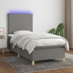Utiliza esta cama box spring con colchón y LED para disfrutar de un sueño reparador. Es el centro de atención de tu dormitorio. Material de primera calidad: La tela posee un aspecto sencillo y limpio, y es transpirable y duradera.Cabecero práctico: El cabecero de la cama es ajustable en altura según tus preferencias. El cabecero de la cama te proporciona un excelente apoyo para la espalda mientras estás sentado en la cama para leer o ver la televisión.Tira de LED de colores: Alegra la oscuridad con luces LED de colores.Colchón de muelles ensacados: El muelle ensacado individual incorporado es conocido por su altísima calidad, al tiempo que garantiza un alto nivel de durabilidad y adaptabilidad. Puede absorber eficazmente el ruido y los golpes causados por los lanzamientos y los giros.Protector de colchón respetuoso con la piel: El protector de colchón tiene una funda de tejido resistente y respetuoso con la piel, que lo hace suave y confortable. Nota:Por razones de higiene, el colchón no puede devolverse si se ha quitado o abierto el embalaje.Únicamente puedes cortar por la parte con el símbolo de las tijeras y únicamente la parte con el USB seguirá funcionando como antes.Cada producto viene con un manual de montaje en la caja para facilitar el montaje.El producto tiene un conector USB, pero no se incluye la fuente de alimentación USB de 5 V certificada.