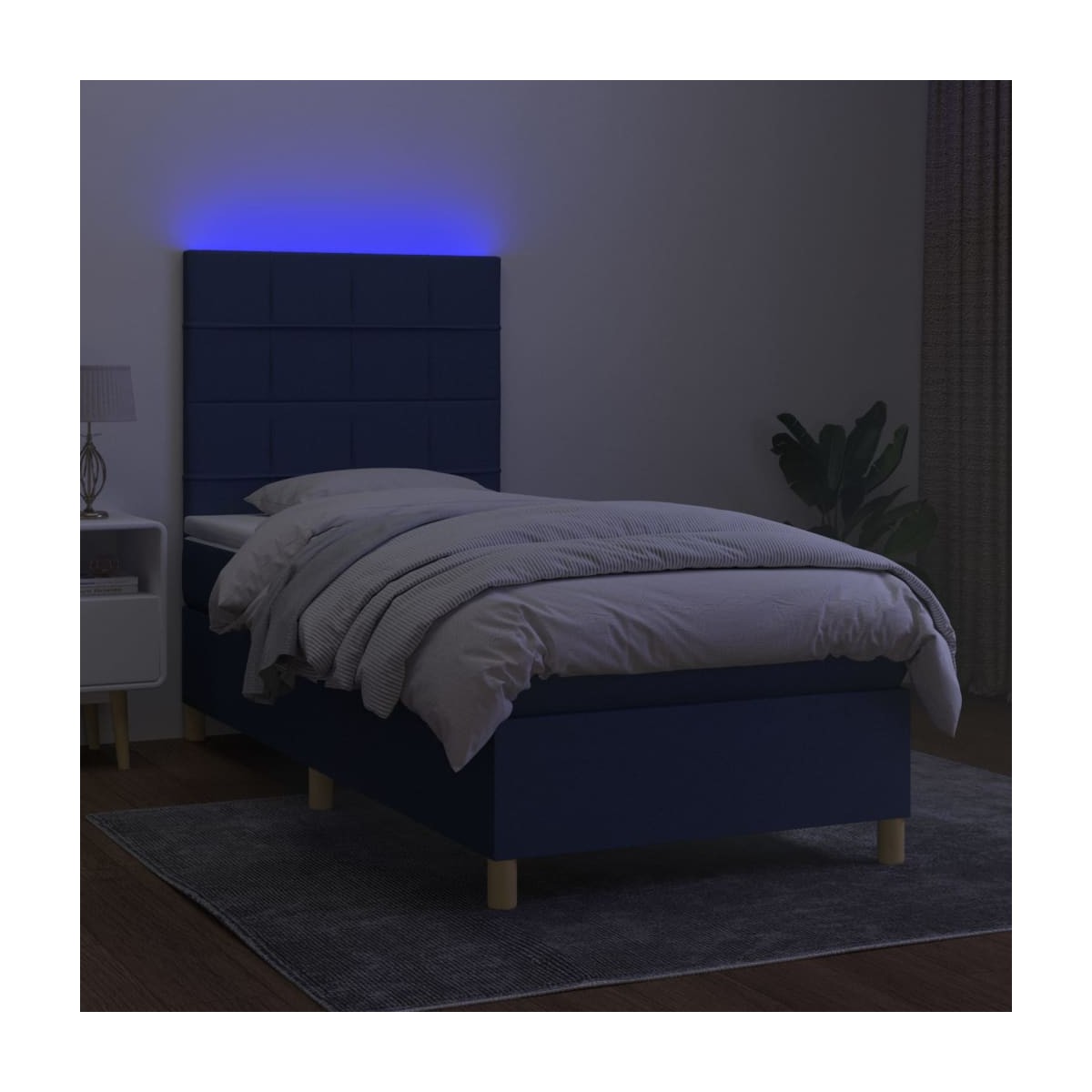 Utiliza esta cama box spring con colchón y LED para disfrutar de un sueño reparador. Es el centro de atención de tu dormitorio. Material de primera calidad: La tela posee un aspecto sencillo y limpio, y es transpirable y duradera.Cabecero práctico: El cabecero de la cama es ajustable en altura según tus preferencias. El cabecero de la cama te proporciona un excelente apoyo para la espalda mientras estás sentado en la cama para leer o ver la televisión.Tira de LED de colores: Alegra la oscuridad con luces LED de colores.Colchón de muelles ensacados: El muelle ensacado individual incorporado es conocido por su altísima calidad, al tiempo que garantiza un alto nivel de durabilidad y adaptabilidad. Puede absorber eficazmente el ruido y los golpes causados por los lanzamientos y los giros.Protector de colchón respetuoso con la piel: El protector de colchón tiene una funda de tejido resistente y respetuoso con la piel, que lo hace suave y confortable. Nota:Por razones de higiene, el colchón no puede devolverse si se ha quitado o abierto el embalaje.Únicamente puedes cortar por la parte con el símbolo de las tijeras y únicamente la parte con el USB seguirá funcionando como antes.Cada producto viene con un manual de montaje en la caja para facilitar el montaje.El producto tiene un conector USB, pero no se incluye la fuente de alimentación USB de 5 V certificada.