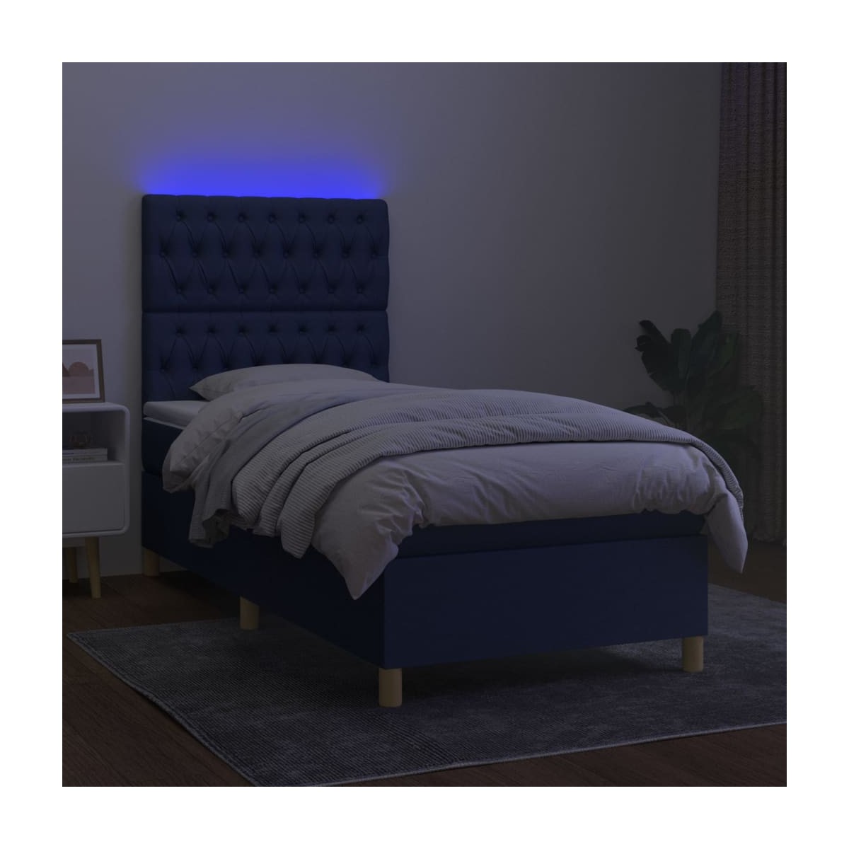 Utiliza esta cama box spring con colchón y LED para disfrutar de un sueño reparador. Es el centro de atención de tu dormitorio. Material de primera calidad: La tela posee un aspecto sencillo y limpio, y es transpirable y duradera.Cabecero práctico: El cabecero de la cama es ajustable en altura según tus preferencias. El cabecero de la cama te proporciona un excelente apoyo para la espalda mientras estás sentado en la cama para leer o ver la televisión.Tira de LED de colores: Alegra la oscuridad con luces LED de colores.Colchón de muelles ensacados: El muelle ensacado individual incorporado es conocido por su altísima calidad, al tiempo que garantiza un alto nivel de durabilidad y adaptabilidad. Puede absorber eficazmente el ruido y los golpes causados por los lanzamientos y los giros.Protector de colchón respetuoso con la piel: El protector de colchón tiene una funda de tejido resistente y respetuoso con la piel, que lo hace suave y confortable. Nota:Por razones de higiene, el colchón no puede devolverse si se ha quitado o abierto el embalaje.Únicamente puedes cortar por la parte con el símbolo de las tijeras y únicamente la parte con el USB seguirá funcionando como antes.Cada producto viene con un manual de montaje en la caja para facilitar el montaje.El producto tiene un conector USB, pero no se incluye la fuente de alimentación USB de 5 V certificada.