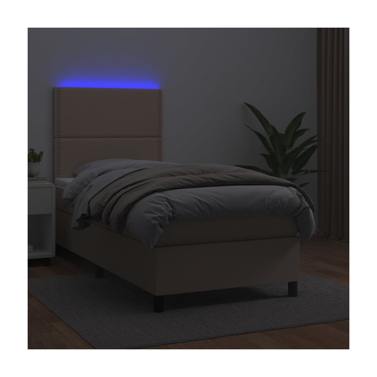 Utiliza esta cama box spring con colchón y LED para disfrutar de un sueño reparador. Es el centro de atención de tu dormitorio. Material duradero: El cuero sintético de primera calidad es un material muy duradero. Es resistente a las manchas, por lo que es fácil de limpiar con un paño húmedo. Además, la superficie lisa da un aspecto lujoso y la belleza del cuero auténtico.Cabecero práctico: El cabecero de la cama es ajustable en altura según tus preferencias. El cabecero de la cama te proporciona un excelente apoyo para la espalda mientras estás sentado en la cama para leer o ver la televisión.Tira de LED de colores: Alegra la oscuridad con luces LED de colores.Colchón de muelles ensacados: El muelle ensacado individual incorporado es conocido por su altísima calidad, al tiempo que garantiza un alto nivel de durabilidad y adaptabilidad. Puede absorber eficazmente el ruido y los golpes causados por los lanzamientos y los giros.Protector de colchón respetuoso con la piel: El protector de colchón tiene una funda de tejido resistente y respetuoso con la piel, que lo hace suave y confortable. Nota:Por razones de higiene, el colchón no puede devolverse si se ha quitado o abierto el embalaje.Únicamente puedes cortar por la parte con el símbolo de las tijeras y únicamente la parte con el USB seguirá funcionando como antes.Cada producto viene con un manual de montaje en la caja para facilitar el montaje.El producto tiene un conector USB, pero no se incluye la fuente de alimentación USB de 5 V certificada.