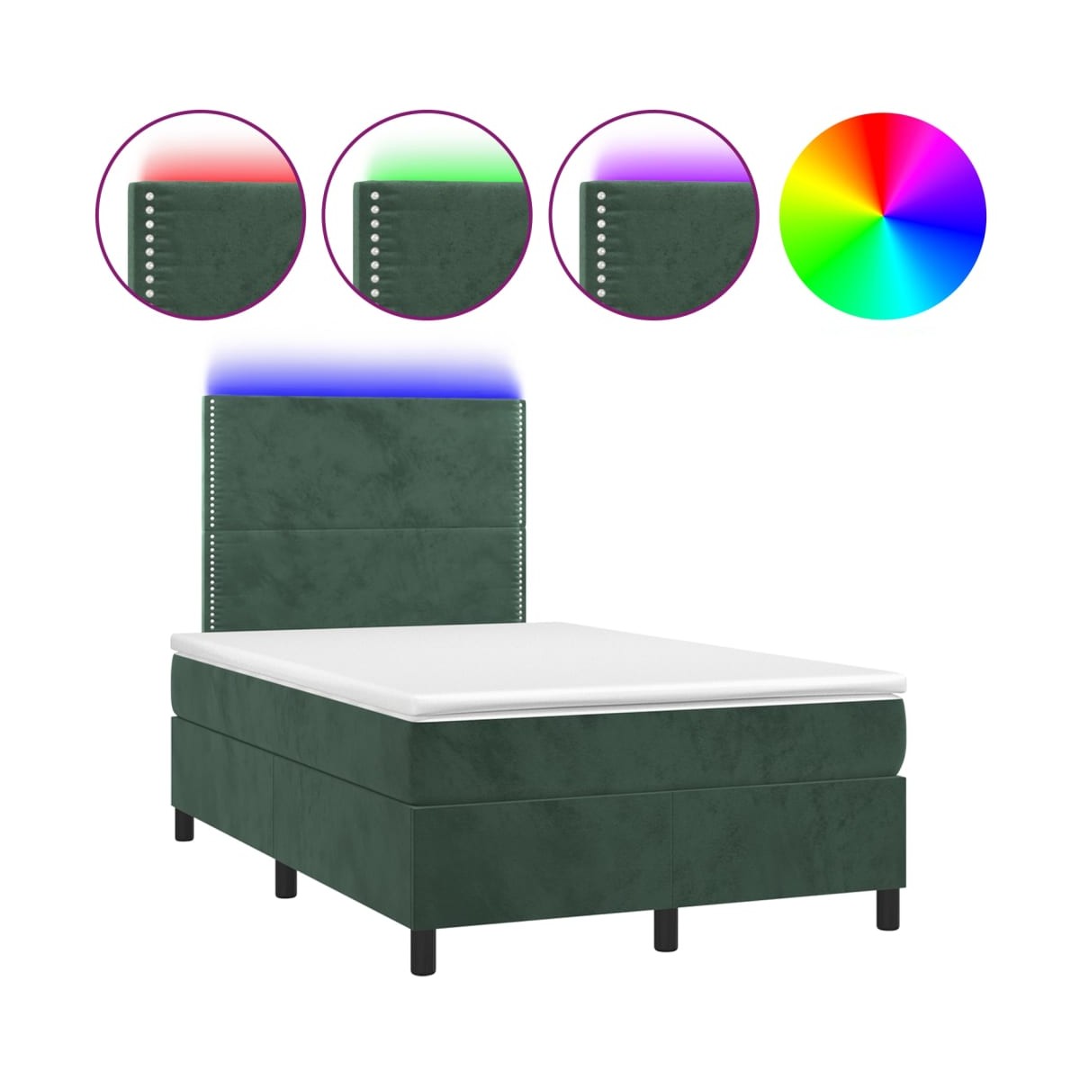 Utiliza esta cama box spring con colchón y LED para disfrutar de un sueño reparador. Es el centro de atención de tu dormitorio. Terciopelo suave: El terciopelo es una tela suave y lujosa, reconocida por su denso pelo de fibras cortadas de forma uniforme que tienen una suave pelusa. La tela de terciopelo posee un característico y suave tacto, lo que hace que sea cómoda al tacto.Cabecero práctico: El cabecero de la cama es ajustable en altura según tus preferencias. El cabecero de la cama te proporciona un excelente apoyo para la espalda mientras estás sentado en la cama para leer o ver la televisión.Tira de LED de colores: Alegra la oscuridad con luces LED de colores.Colchón de muelles ensacados: El muelle ensacado individual incorporado es conocido por su altísima calidad, al tiempo que garantiza un alto nivel de durabilidad y adaptabilidad. Puede absorber eficazmente el ruido y los golpes causados por los lanzamientos y los giros.Protector de colchón respetuoso con la piel: El protector de colchón tiene una funda de tejido resistente y respetuoso con la piel, que lo hace suave y confortable. Nota:Por razones de higiene, el colchón no puede devolverse si se ha quitado o abierto el embalaje.Únicamente puedes cortar por la parte con el símbolo de las tijeras y únicamente la parte con el USB seguirá funcionando como antes.Cada producto viene con un manual de montaje en la caja para facilitar el montaje.El producto tiene un conector USB, pero no se incluye la fuente de alimentación USB de 5 V certificada.