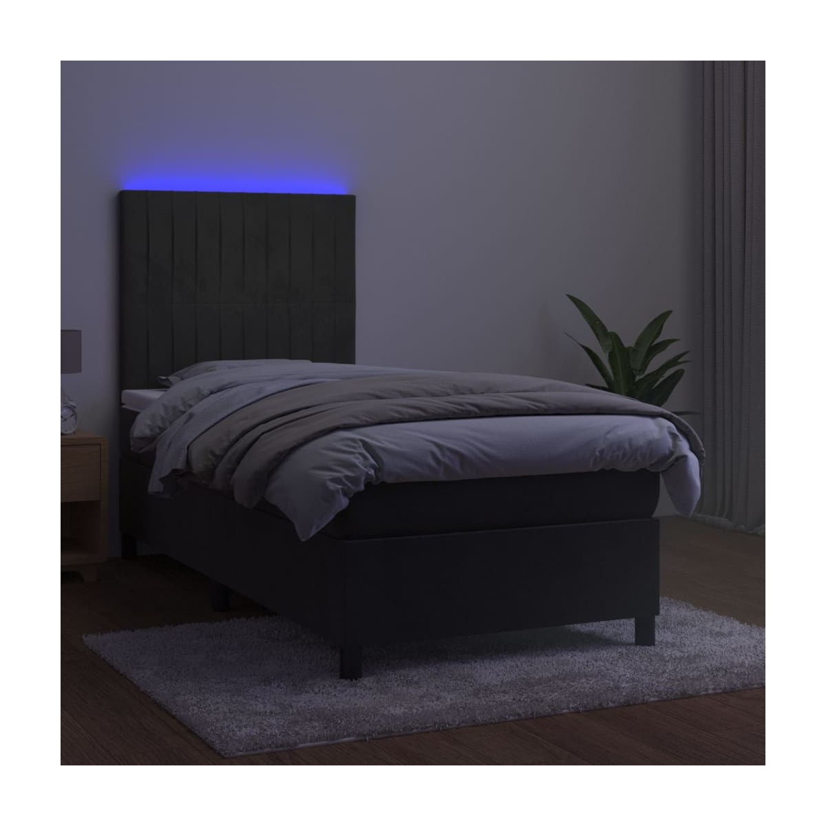 Utiliza esta cama box spring con colchón y LED para disfrutar de un sueño reparador. Es el centro de atención de tu dormitorio. Terciopelo suave: El terciopelo es una tela suave y lujosa, reconocida por su denso pelo de fibras cortadas de forma uniforme que tienen una suave pelusa. La tela de terciopelo posee un característico y suave tacto, lo que hace que sea cómoda al tacto.Cabecero práctico: El cabecero de la cama es ajustable en altura según tus preferencias. El cabecero de la cama te proporciona un excelente apoyo para la espalda mientras estás sentado en la cama para leer o ver la televisión.Tira de LED de colores: Alegra la oscuridad con luces LED de colores.Colchón de muelles ensacados: El muelle ensacado individual incorporado es conocido por su altísima calidad, al tiempo que garantiza un alto nivel de durabilidad y adaptabilidad. Puede absorber eficazmente el ruido y los golpes causados por los lanzamientos y los giros.Protector de colchón respetuoso con la piel: El protector de colchón tiene una funda de tejido resistente y respetuoso con la piel, que lo hace suave y confortable. Nota:Por razones de higiene, el colchón no puede devolverse si se ha quitado o abierto el embalaje.Únicamente puedes cortar por la parte con el símbolo de las tijeras y únicamente la parte con el USB seguirá funcionando como antes.Cada producto viene con un manual de montaje en la caja para facilitar el montaje.El producto tiene un conector USB, pero no se incluye la fuente de alimentación USB de 5 V certificada.