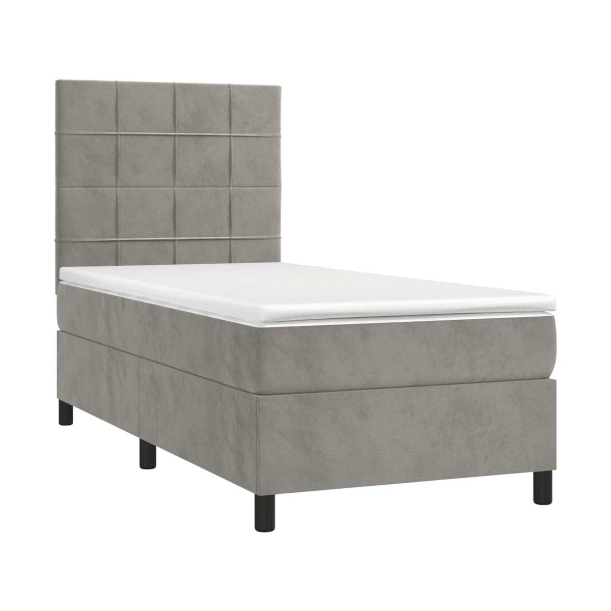 Utiliza esta cama box spring con colchón y LED para disfrutar de un sueño reparador. Es el centro de atención de tu dormitorio. Terciopelo suave: El terciopelo es una tela suave y lujosa, reconocida por su denso pelo de fibras cortadas de forma uniforme que tienen una suave pelusa. La tela de terciopelo posee un característico y suave tacto, lo que hace que sea cómoda al tacto.Cabecero práctico: El cabecero de la cama es ajustable en altura según tus preferencias. El cabecero de la cama te proporciona un excelente apoyo para la espalda mientras estás sentado en la cama para leer o ver la televisión.Tira de LED de colores: Alegra la oscuridad con luces LED de colores.Colchón de muelles ensacados: El muelle ensacado individual incorporado es conocido por su altísima calidad, al tiempo que garantiza un alto nivel de durabilidad y adaptabilidad. Puede absorber eficazmente el ruido y los golpes causados por los lanzamientos y los giros.Protector de colchón respetuoso con la piel: El protector de colchón tiene una funda de tejido resistente y respetuoso con la piel, que lo hace suave y confortable. Nota:Por razones de higiene, el colchón no puede devolverse si se ha quitado o abierto el embalaje.Únicamente puedes cortar por la parte con el símbolo de las tijeras y únicamente la parte con el USB seguirá funcionando como antes.Cada producto viene con un manual de montaje en la caja para facilitar el montaje.El producto tiene un conector USB, pero no se incluye la fuente de alimentación USB de 5 V certificada.
