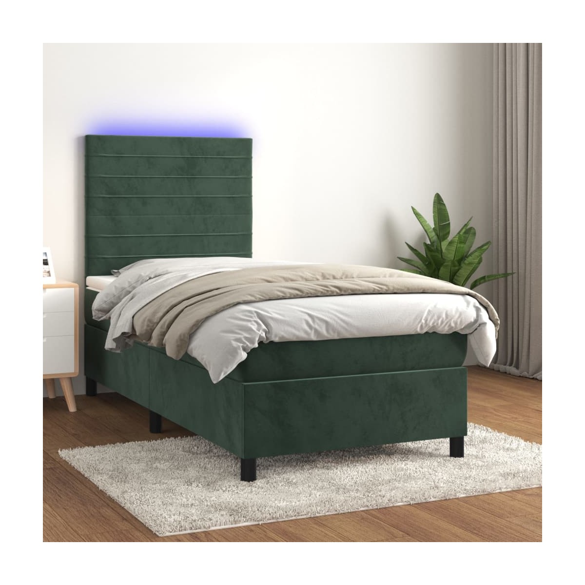 Utiliza esta cama box spring con colchón y LED para disfrutar de un sueño reparador. Es el centro de atención de tu dormitorio. Terciopelo suave: El terciopelo es una tela suave y lujosa, reconocida por su denso pelo de fibras cortadas de forma uniforme que tienen una suave pelusa. La tela de terciopelo posee un característico y suave tacto, lo que hace que sea cómoda al tacto.Cabecero práctico: El cabecero de la cama es ajustable en altura según tus preferencias. El cabecero de la cama te proporciona un excelente apoyo para la espalda mientras estás sentado en la cama para leer o ver la televisión.Tira de LED de colores: Alegra la oscuridad con luces LED de colores.Colchón de muelles ensacados: El muelle ensacado individual incorporado es conocido por su altísima calidad, al tiempo que garantiza un alto nivel de durabilidad y adaptabilidad. Puede absorber eficazmente el ruido y los golpes causados por los lanzamientos y los giros.Protector de colchón respetuoso con la piel: El protector de colchón tiene una funda de tejido resistente y respetuoso con la piel, que lo hace suave y confortable. Nota:Por razones de higiene, el colchón no puede devolverse si se ha quitado o abierto el embalaje.Únicamente puedes cortar por la parte con el símbolo de las tijeras y únicamente la parte con el USB seguirá funcionando como antes.Cada producto viene con un manual de montaje en la caja para facilitar el montaje.El producto tiene un conector USB, pero no se incluye la fuente de alimentación USB de 5 V certificada.