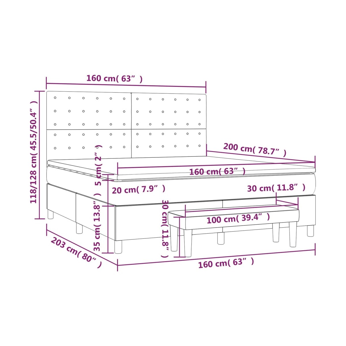 - Dimensiones: 203 x 160 x 118/128 cm (largo x ancho x alto)