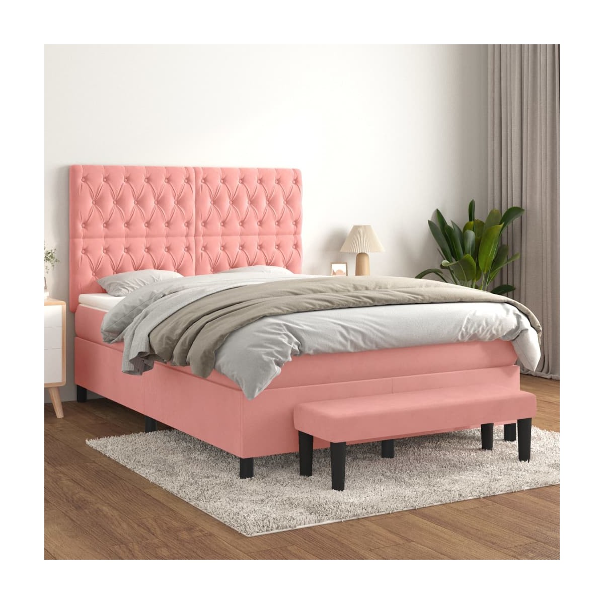 Utiliza esta cama de muelles para disfrutar de un sueño reparador. Te ofrece la máxima relajación y un sueño placentero. Terciopelo suave: El terciopelo es una tela suave y lujosa, reconocida por su denso pelo de fibras cortadas de forma uniforme que tienen una suave pelusa. La tela de terciopelo posee un característico y suave tacto, lo que hace que sea cómoda al tacto.Cabecero práctico: El cabecero de la cama es ajustable en altura según tus preferencias. El cabecero de la cama te proporciona un excelente apoyo para la espalda mientras estás sentado en la cama para leer o ver la televisión.Colchón de muelles ensacados: El muelle ensacado individual incorporado es conocido por su altísima calidad, al tiempo que garantiza un alto nivel de durabilidad y adaptabilidad. Puede absorber eficazmente el ruido y los golpes causados por los lanzamientos y los giros.Soporte de dureza media: El colchón de la cama proporciona perfectamente una mayor estabilidad y el nivel justo de firmeza sin sacrificar la comodidad. Por tanto, es ideal para quienes duermen de espaldas o boca abajo.Protector de colchón respetuoso con la piel: El protector de colchón tiene una funda de tejido resistente y respetuoso con la piel, que lo hace suave y confortable.Banco multifuncional: Este banco puede servir como asiento adicional en tu casa. Además, puede utilizarse como banco de pie de cama. Nota:Por razones de higiene, el colchón no puede devolverse si se ha quitado o abierto el embalaje.Cada producto viene con un manual de montaje en la caja para facilitar el montaje.