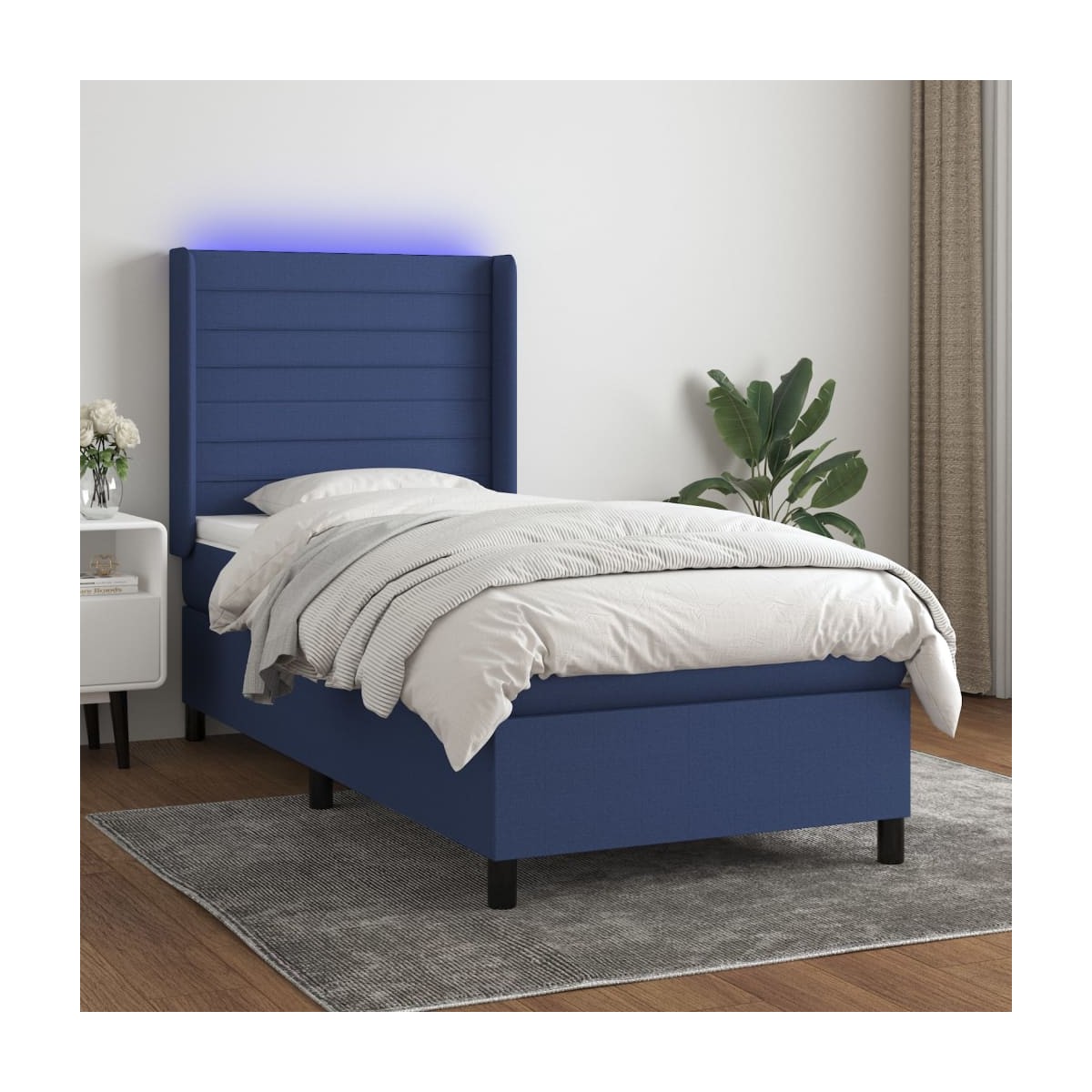 Utiliza esta cama tipo box spring con colchón y luces LED para disfrutar de un sueño reparador. Será el centro de atención del dormitorio. Material de primera calidad: La tela posee un aspecto sencillo y limpio, y es transpirable y duradera.Cabecero práctico: El cabecero de la cama es ajustable en altura según tus preferencias. El cabecero de la cama te proporciona un excelente apoyo para la espalda mientras estás sentado en la cama para leer o ver la televisión.Tira de LED de colores: Alegra la oscuridad con luces LED de colores.Colchón de muelles ensacados: El muelle ensacado individual incorporado es conocido por su altísima calidad, al tiempo que garantiza un alto nivel de durabilidad y adaptabilidad. Puede absorber eficazmente el ruido y los golpes causados por los lanzamientos y los giros.Protector de colchón respetuoso con la piel: El protector de colchón tiene una funda de tejido resistente y respetuoso con la piel, que lo hace suave y confortable. Nota: La lona impermeable no está incluidaPor razones de higiene, el colchón no puede devolverse si se ha quitado o abierto el embalaje.Únicamente puedes cortar por la parte con el símbolo de las tijeras y únicamente la parte con el USB seguirá funcionando como antes.Cada producto viene con un manual de montaje en la caja para facilitar el montaje.El producto tiene un conector USB, pero no se incluye la fuente de alimentación USB de 5 V certificada.
