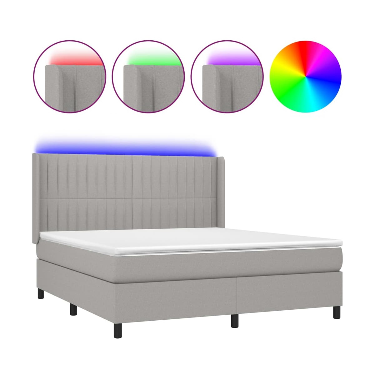 Utiliza esta cama tipo box spring con colchón y luces LED para disfrutar de un sueño reparador. Será el centro de atención del dormitorio. Material de primera calidad: La tela posee un aspecto sencillo y limpio, y es transpirable y duradera.Cabecero práctico: El cabecero de la cama es ajustable en altura según tus preferencias. El cabecero de la cama te proporciona un excelente apoyo para la espalda mientras estás sentado en la cama para leer o ver la televisión.Tira de LED de colores: Alegra la oscuridad con luces LED de colores.Colchón de muelles ensacados: El muelle ensacado individual incorporado es conocido por su altísima calidad, al tiempo que garantiza un alto nivel de durabilidad y adaptabilidad. Puede absorber eficazmente el ruido y los golpes causados por los lanzamientos y los giros.Protector de colchón respetuoso con la piel: El protector de colchón tiene una funda de tejido resistente y respetuoso con la piel, que lo hace suave y confortable. Nota: La lona impermeable no está incluidaPor razones de higiene, el colchón no puede devolverse si se ha quitado o abierto el embalaje.Únicamente puedes cortar por la parte con el símbolo de las tijeras y únicamente la parte con el USB seguirá funcionando como antes.Cada producto viene con un manual de montaje en la caja para facilitar el montaje.El producto tiene un conector USB, pero no se incluye la fuente de alimentación USB de 5 V certificada.