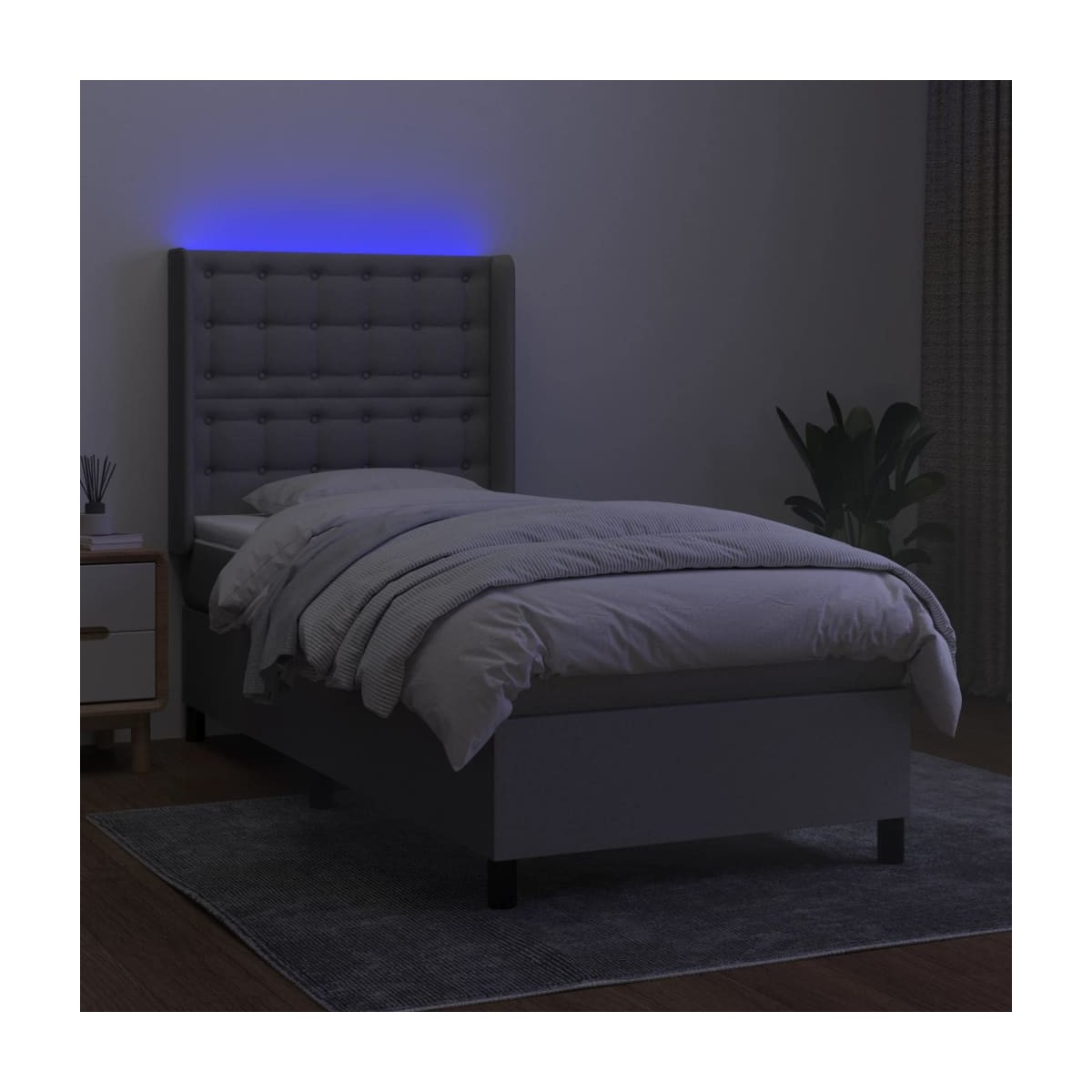 Utiliza esta cama tipo box spring con colchón y luces LED para disfrutar de un sueño reparador. Será el centro de atención del dormitorio. Material de primera calidad: La tela posee un aspecto sencillo y limpio, y es transpirable y duradera.Cabecero práctico: El cabecero de la cama es ajustable en altura según tus preferencias. El cabecero de la cama te proporciona un excelente apoyo para la espalda mientras estás sentado en la cama para leer o ver la televisión.Tira de LED de colores: Alegra la oscuridad con luces LED de colores.Colchón de muelles ensacados: El muelle ensacado individual incorporado es conocido por su altísima calidad, al tiempo que garantiza un alto nivel de durabilidad y adaptabilidad. Puede absorber eficazmente el ruido y los golpes causados por los lanzamientos y los giros.Protector de colchón respetuoso con la piel: El protector de colchón tiene una funda de tejido resistente y respetuoso con la piel, que lo hace suave y confortable. Nota: La lona impermeable no está incluidaPor razones de higiene, el colchón no puede devolverse si se ha quitado o abierto el embalaje.Únicamente puedes cortar por la parte con el símbolo de las tijeras y únicamente la parte con el USB seguirá funcionando como antes.Cada producto viene con un manual de montaje en la caja para facilitar el montaje.El producto tiene un conector USB, pero no se incluye la fuente de alimentación USB de 5 V certificada.