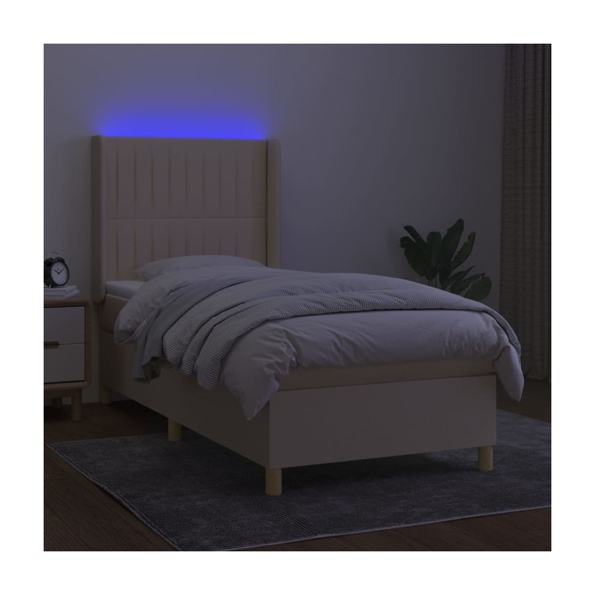 Utiliza esta cama tipo box spring con colchón y luces LED para disfrutar de un sueño reparador. Será el centro de atención del dormitorio. Material de primera calidad: La tela posee un aspecto sencillo y limpio, y es transpirable y duradera.Cabecero práctico: El cabecero de la cama es ajustable en altura según tus preferencias. El cabecero de la cama te proporciona un excelente apoyo para la espalda mientras estás sentado en la cama para leer o ver la televisión.Tira de LED de colores: Alegra la oscuridad con luces LED de colores.Colchón de muelles ensacados: El muelle ensacado individual incorporado es conocido por su altísima calidad, al tiempo que garantiza un alto nivel de durabilidad y adaptabilidad. Puede absorber eficazmente el ruido y los golpes causados por los lanzamientos y los giros.Protector de colchón respetuoso con la piel: El protector de colchón tiene una funda de tejido resistente y respetuoso con la piel, que lo hace suave y confortable. Nota:Por razones de higiene, el colchón no puede devolverse si se ha quitado o abierto el embalaje.Únicamente puedes cortar por la parte con el símbolo de las tijeras y únicamente la parte con el USB seguirá funcionando como antes.Cada producto viene con un manual de montaje en la caja para facilitar el montaje.El producto tiene un conector USB, pero no se incluye la fuente de alimentación USB de 5 V certificada.