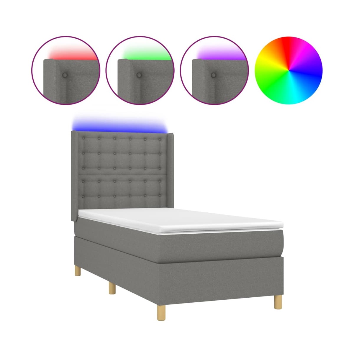 Utiliza esta cama tipo box spring con colchón y luces LED para disfrutar de un sueño reparador. Será el centro de atención del dormitorio. Material de primera calidad: La tela posee un aspecto sencillo y limpio, y es transpirable y duradera.Cabecero práctico: El cabecero de la cama es ajustable en altura según tus preferencias. El cabecero de la cama te proporciona un excelente apoyo para la espalda mientras estás sentado en la cama para leer o ver la televisión.Tira de LED de colores: Alegra la oscuridad con luces LED de colores.Colchón de muelles ensacados: El muelle ensacado individual incorporado es conocido por su altísima calidad, al tiempo que garantiza un alto nivel de durabilidad y adaptabilidad. Puede absorber eficazmente el ruido y los golpes causados por los lanzamientos y los giros.Protector de colchón respetuoso con la piel: El protector de colchón tiene una funda de tejido resistente y respetuoso con la piel, que lo hace suave y confortable. Nota:Por razones de higiene, el colchón no puede devolverse si se ha quitado o abierto el embalaje.Únicamente puedes cortar por la parte con el símbolo de las tijeras y únicamente la parte con el USB seguirá funcionando como antes.Cada producto viene con un manual de montaje en la caja para facilitar el montaje.El producto tiene un conector USB, pero no se incluye la fuente de alimentación USB de 5 V certificada.