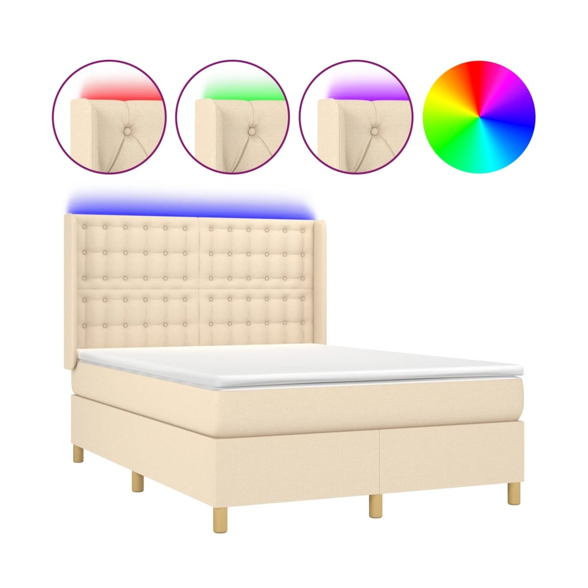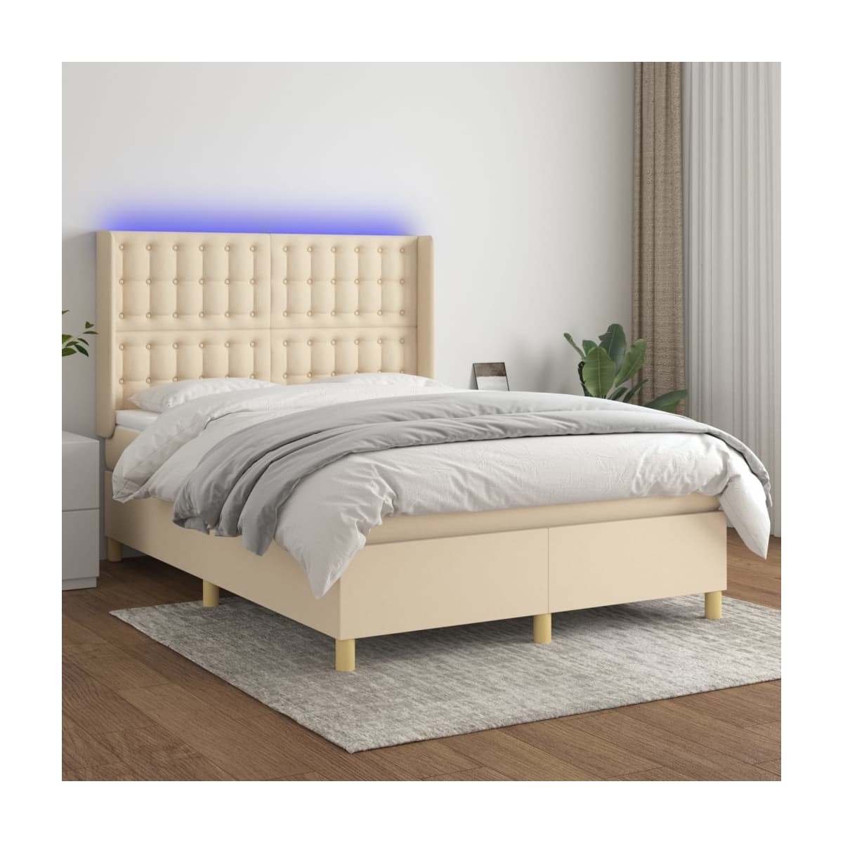 Utiliza esta cama box spring con colchón y LED para disfrutar de un sueño reparador. Es el centro de atención de tu dormitorio. Material de primera calidad: La tela posee un aspecto sencillo y limpio, y es transpirable y duradera.Cabecero práctico: El cabecero de la cama es ajustable en altura según tus preferencias. El cabecero de la cama te proporciona un excelente apoyo para la espalda mientras estás sentado en la cama para leer o ver la televisión.Tira de LED de colores: Alegra la oscuridad con luces LED de colores.Colchón de muelles ensacados: El muelle ensacado individual incorporado es conocido por su altísima calidad, al tiempo que garantiza un alto nivel de durabilidad y adaptabilidad. Puede absorber eficazmente el ruido y los golpes causados por los lanzamientos y los giros.Protector de colchón respetuoso con la piel: El protector de colchón tiene una funda de tejido resistente y respetuoso con la piel, que lo hace suave y confortable. Nota:Por razones de higiene, el colchón no puede devolverse si se ha quitado o abierto el embalaje.Únicamente puedes cortar por la parte con el símbolo de las tijeras y únicamente la parte con el USB seguirá funcionando como antes.Cada producto viene con un manual de montaje en la caja para facilitar el montaje.El producto tiene un conector USB, pero no se incluye la fuente de alimentación USB de 5 V certificada.