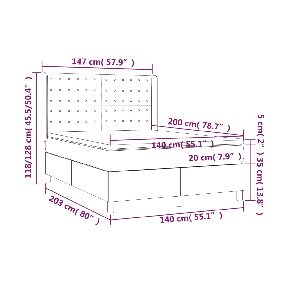 Utiliza esta cama box spring con colchón y LED para disfrutar de un sueño reparador. Es el centro de atención de tu dormitorio. Material de primera calidad: La tela posee un aspecto sencillo y limpio, y es transpirable y duradera.Cabecero práctico: El cabecero de la cama es ajustable en altura según tus preferencias. El cabecero de la cama te proporciona un excelente apoyo para la espalda mientras estás sentado en la cama para leer o ver la televisión.Tira de LED de colores: Alegra la oscuridad con luces LED de colores.Colchón de muelles ensacados: El muelle ensacado individual incorporado es conocido por su altísima calidad, al tiempo que garantiza un alto nivel de durabilidad y adaptabilidad. Puede absorber eficazmente el ruido y los golpes causados por los lanzamientos y los giros.Protector de colchón respetuoso con la piel: El protector de colchón tiene una funda de tejido resistente y respetuoso con la piel, que lo hace suave y confortable. Nota:Por razones de higiene, el colchón no puede devolverse si se ha quitado o abierto el embalaje.Únicamente puedes cortar por la parte con el símbolo de las tijeras y únicamente la parte con el USB seguirá funcionando como antes.Cada producto viene con un manual de montaje en la caja para facilitar el montaje.El producto tiene un conector USB, pero no se incluye la fuente de alimentación USB de 5 V certificada.