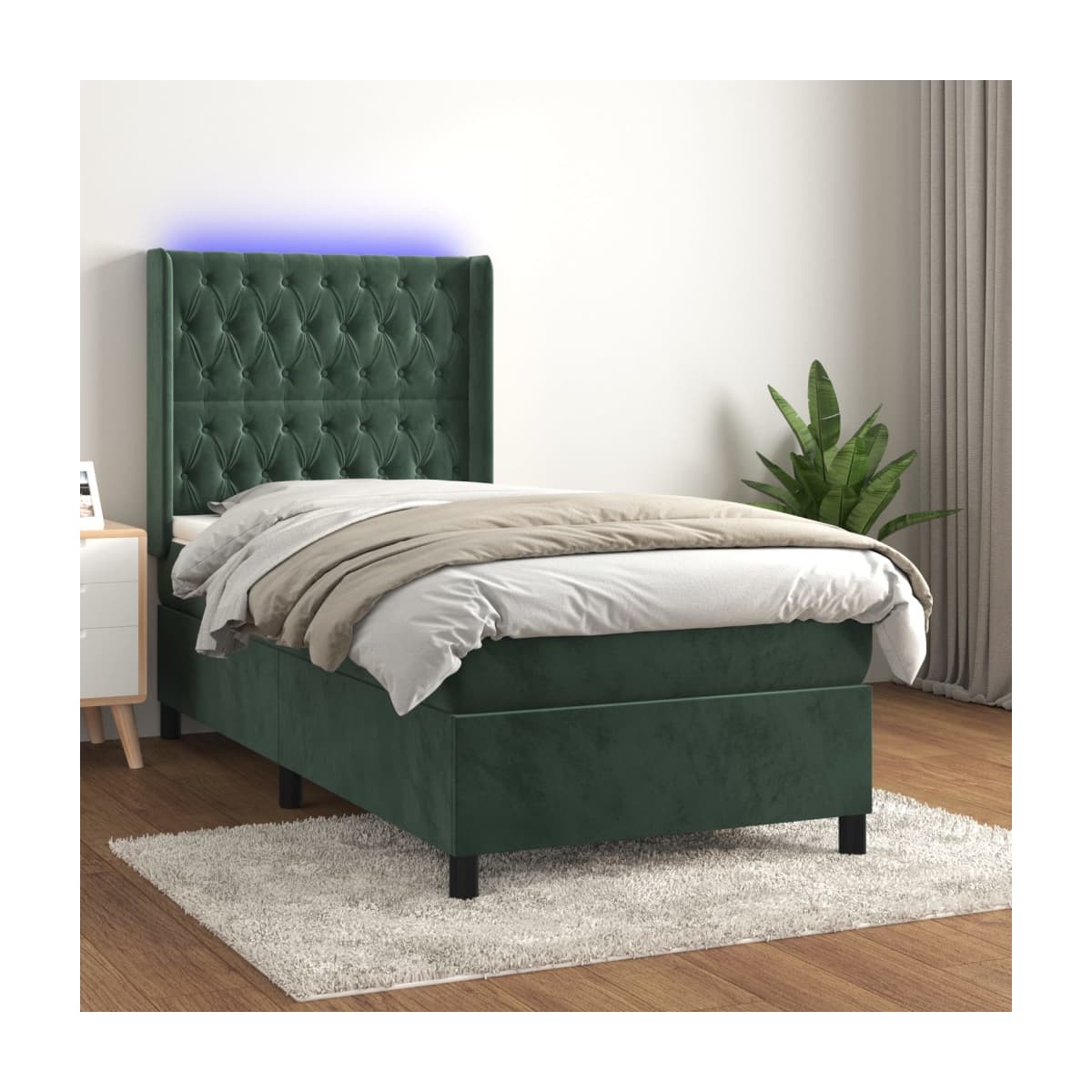 Utiliza esta cama box spring con colchón y LED para disfrutar de un sueño reparador. Es el centro de atención de tu dormitorio. Terciopelo suave: El terciopelo es una tela suave y lujosa, reconocida por su denso pelo de fibras cortadas de forma uniforme que tienen una suave pelusa. La tela de terciopelo posee un característico y suave tacto, lo que hace que sea cómoda al tacto.Cabecero práctico: El cabecero de la cama es ajustable en altura según tus preferencias. El cabecero de la cama te proporciona un excelente apoyo para la espalda mientras estás sentado en la cama para leer o ver la televisión.Tira de LED de colores: Alegra la oscuridad con luces LED de colores.Colchón de muelles ensacados: El muelle ensacado individual incorporado es conocido por su altísima calidad, al tiempo que garantiza un alto nivel de durabilidad y adaptabilidad. Puede absorber eficazmente el ruido y los golpes causados por los lanzamientos y los giros.Protector de colchón respetuoso con la piel: El protector de colchón tiene una funda de tejido resistente y respetuoso con la piel, que lo hace suave y confortable. Nota:Por razones de higiene, el colchón no puede devolverse si se ha quitado o abierto el embalaje.Únicamente puedes cortar por la parte con el símbolo de las tijeras y únicamente la parte con el USB seguirá funcionando como antes.Cada producto viene con un manual de montaje en la caja para facilitar el montaje.El producto tiene un conector USB, pero no se incluye la fuente de alimentación USB de 5 V certificada.