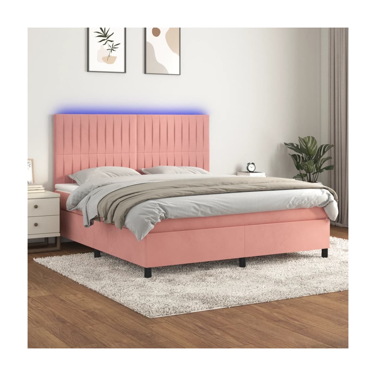Utiliza esta cama box spring con colchón y LED para disfrutar de un sueño reparador. Es el centro de atención de tu dormitorio. Terciopelo suave: El terciopelo es una tela suave y lujosa, reconocida por su denso pelo de fibras cortadas de forma uniforme que tienen una suave pelusa. La tela de terciopelo posee un característico y suave tacto, lo que hace que sea cómoda al tacto.Cabecero práctico: El cabecero de la cama es ajustable en altura según tus preferencias. El cabecero de la cama te proporciona un excelente apoyo para la espalda mientras estás sentado en la cama para leer o ver la televisión.Tira de LED de colores: Alegra la oscuridad con luces LED de colores.Colchón de muelles ensacados: El muelle ensacado individual incorporado es conocido por su altísima calidad, al tiempo que garantiza un alto nivel de durabilidad y adaptabilidad. Puede absorber eficazmente el ruido y los golpes causados por los lanzamientos y los giros.Protector de colchón respetuoso con la piel: El protector de colchón tiene una funda de tejido resistente y respetuoso con la piel, que lo hace suave y confortable. Nota:Por razones de higiene, el colchón no puede devolverse si se ha quitado o abierto el embalaje.Únicamente puedes cortar por la parte con el símbolo de las tijeras y únicamente la parte con el USB seguirá funcionando como antes.Cada producto viene con un manual de montaje en la caja para facilitar el montaje.El producto tiene un conector USB, pero no se incluye la fuente de alimentación USB de 5 V certificada.