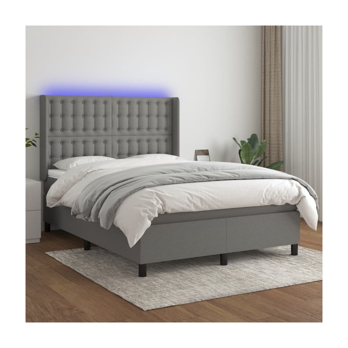 Utiliza esta cama tipo box spring con colchón y luces LED para disfrutar de un sueño reparador. Será el centro de atención del dormitorio. Material de primera calidad: La tela posee un aspecto sencillo y limpio, y es transpirable y duradera.Cabecero práctico: El cabecero de la cama es ajustable en altura según tus preferencias. El cabecero de la cama te proporciona un excelente apoyo para la espalda mientras estás sentado en la cama para leer o ver la televisión.Tira de LED de colores: Alegra la oscuridad con luces LED de colores.Colchón de muelles ensacados: El muelle ensacado individual incorporado es conocido por su altísima calidad, al tiempo que garantiza un alto nivel de durabilidad y adaptabilidad. Puede absorber eficazmente el ruido y los golpes causados por los lanzamientos y los giros.Protector de colchón respetuoso con la piel: El protector de colchón tiene una funda de tejido resistente y respetuoso con la piel, que lo hace suave y confortable. Nota: La lona impermeable no está incluidaPor razones de higiene, el colchón no puede devolverse si se ha quitado o abierto el embalaje.Únicamente puedes cortar por la parte con el símbolo de las tijeras y únicamente la parte con el USB seguirá funcionando como antes.Cada producto viene con un manual de montaje en la caja para facilitar el montaje.El producto tiene un conector USB, pero no se incluye la fuente de alimentación USB de 5 V certificada.