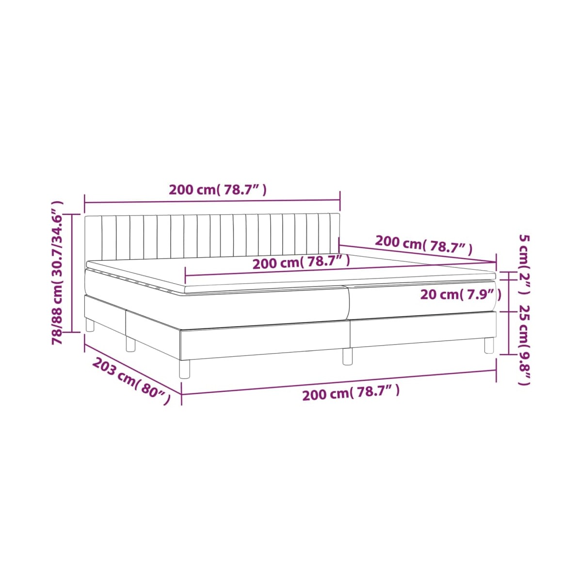 Utiliza esta cama box spring con colchón y LED para disfrutar de un sueño reparador. Es el centro de atención de tu dormitorio. Material de primera calidad: La tela posee un aspecto sencillo y limpio, y es transpirable y duradera.Cabecero práctico: El cabecero de la cama es ajustable en altura según tus preferencias. El cabecero de la cama te proporciona un excelente apoyo para la espalda mientras estás sentado en la cama para leer o ver la televisión.Tira de LED de colores: Alegra la oscuridad con luces LED de colores.Colchón de muelles ensacados: El muelle ensacado individual incorporado es conocido por su altísima calidad, al tiempo que garantiza un alto nivel de durabilidad y adaptabilidad. Puede absorber eficazmente el ruido y los golpes causados por los lanzamientos y los giros.Protector de colchón respetuoso con la piel: El protector de colchón tiene una funda de tejido resistente y respetuoso con la piel, que lo hace suave y confortable. Nota:Por razones de higiene, el colchón no puede devolverse si se ha quitado o abierto el embalaje.Cada producto viene con un manual de montaje en la caja para facilitar el montaje.Únicamente puedes cortar por la parte con el símbolo de las tijeras y únicamente la parte con el USB seguirá funcionando como antes.El producto tiene un conector USB, pero no se incluye la fuente de alimentación USB de 5 V certificada.