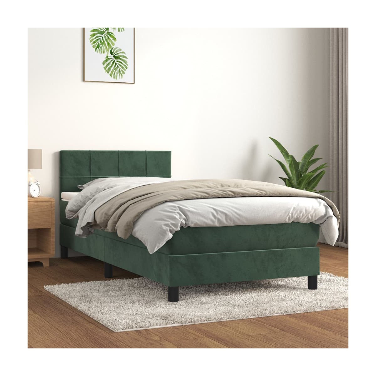 Utiliza esta cama de muelles para disfrutar de un sueño reparador. Te ofrece la máxima relajación y un sueño placentero. Terciopelo suave: El terciopelo es una tela suave y lujosa, reconocida por su denso pelo de fibras cortadas de forma uniforme que tienen una suave pelusa. La tela de terciopelo posee un característico y suave tacto, lo que hace que sea cómoda al tacto.Cabecero práctico: El cabecero de la cama es ajustable en altura según tus preferencias. El cabecero de la cama te proporciona un excelente apoyo para la espalda mientras estás sentado en la cama para leer o ver la televisión.Colchón de muelles ensacados: El muelle ensacado individual incorporado es conocido por su altísima calidad, al tiempo que garantiza un alto nivel de durabilidad y adaptabilidad. Puede absorber eficazmente el ruido y los golpes causados por los lanzamientos y los giros.Soporte de dureza media: El colchón de la cama proporciona perfectamente una mayor estabilidad y el nivel justo de firmeza sin sacrificar la comodidad. Por tanto, es ideal para quienes duermen de espaldas o boca abajo.Protector de colchón respetuoso con la piel: El protector de colchón tiene una funda de tejido resistente y respetuoso con la piel, que lo hace suave y confortable. Nota:Por razones de higiene, el colchón no puede devolverse si se ha quitado o abierto el embalaje.Cada producto viene con un manual de montaje en la caja para facilitar el montaje.