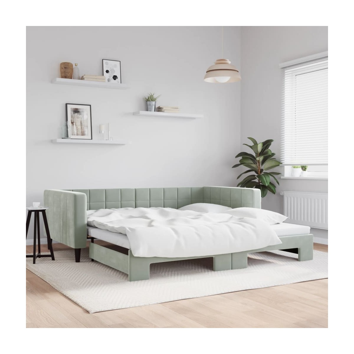 Este sofá cama 2 en 1 con cama nido, que sirve como sofá y cama, es un complemento práctico y llamativo para tu salón o dormitorio. Sofá cama versátil: El sofá cama funciona como sofá durante el día y se convierte fácilmente en una cama doble por la noche sacando la cama nido, lo que proporciona una solución práctica para recibir invitados y maximizar el espacio.Terciopelo suave y construcción sólida: Este sofá cama tiene una estructura resistente hecha de madera y metal y está tapizado en terciopelo suave y cómodo.Diseño moderno: ¡El sofá cama tiene un diseño moderno con líneas nítidas, un aspecto minimalista, así como luz natural, y añadirá un estilo moderno a la casa! Información útil:El colchón no está incluido con la cama. Ofrecemos una variada selección de colchones. Puedes echar un vistazo a nuestra tienda para buscar el correspondiente colchón.