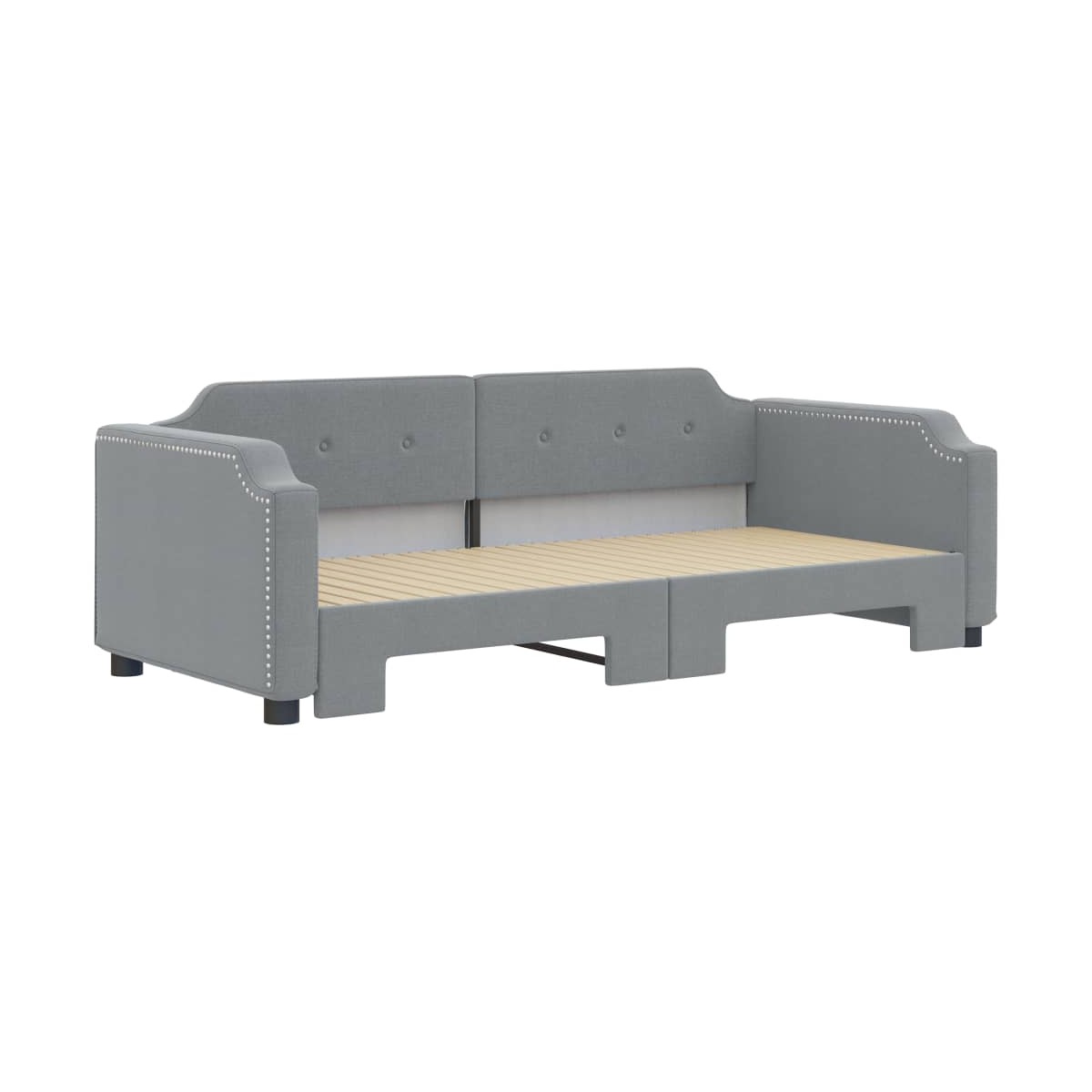 Este sofá cama 2 en 1 con cama nido, que sirve como sofá y cama, es un complemento práctico y llamativo para tu salón o dormitorio. Sofá cama versátil: El sofá cama funciona como sofá durante el día y se convierte fácilmente en una cama doble por la noche sacando la cama nido, lo que proporciona una solución práctica para recibir invitados y maximizar el espacio. Tela duradera: La cama de invitados está hecha de tela, que posee un aspecto sencillo y limpio, además de ser transpirable y duradera. Construcción maciza: La estructura de madera y metal de la cama nido garantiza su solidez y estabilidad. Información útil:Los colchones no están incluidos en este sofá cama. Ofrecemos una variada selección de colchones. Puedes echar un vistazo a nuestra tienda para buscar el correspondiente colchón.