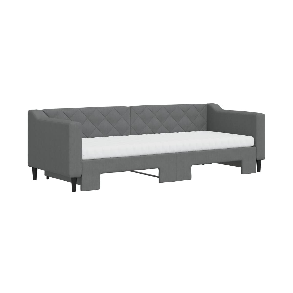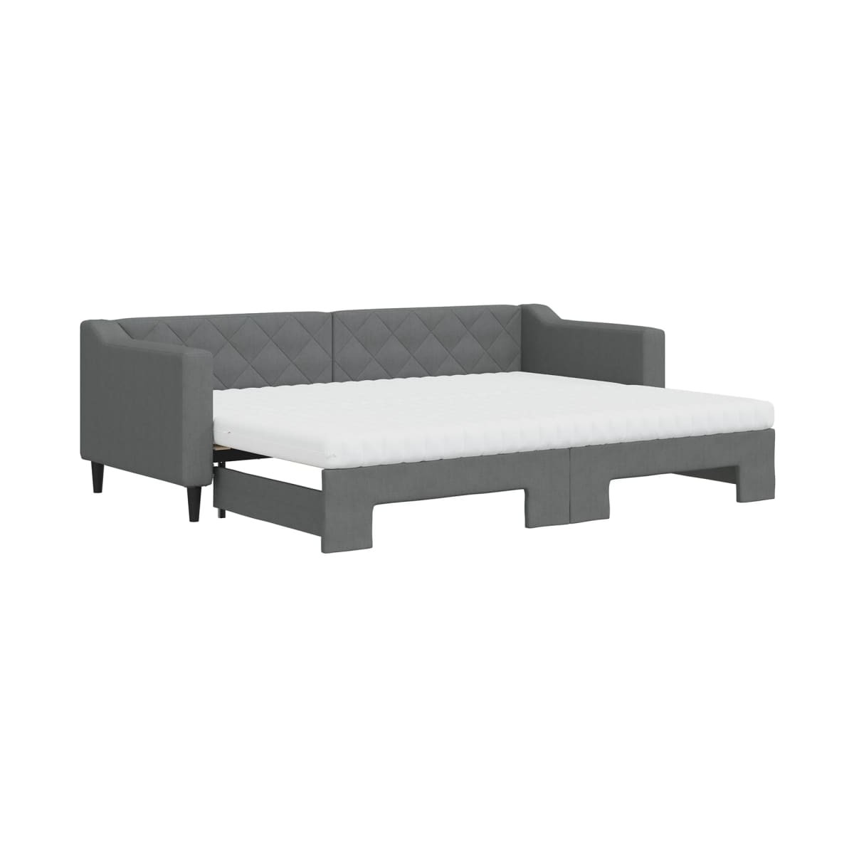 Este sofá cama 2 en 1 con cama nido, que sirve como sofá y cama, es un complemento práctico y llamativo para tu salón o dormitorio. Sofá cama versátil: El sofá cama funciona como sofá durante el día y se convierte fácilmente en una cama doble por la noche sacando la cama nido, lo que proporciona una solución práctica para recibir invitados y maximizar el espacio.Cómodo colchón de espuma: Esta cama se suministra con dos colchones de espuma para un máximo apoyo y una comodidad óptima.Tela duradera y construcción sólida: Este sofá cama tiene una estructura resistente hecha de madera y metal y está tapizado con una tela duradera y cómoda.Diseño moderno: ¡El sofá cama tiene un diseño moderno con líneas nítidas, un aspecto minimalista y añadirá un estilo moderno a la casa!