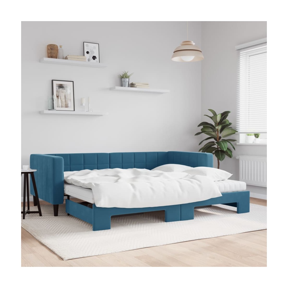 Este sofá cama 2 en 1 con cama nido, que sirve como sofá y cama, es un complemento práctico y llamativo para tu salón o dormitorio. Sofá cama versátil: El sofá cama funciona como sofá durante el día y se convierte fácilmente en una cama doble por la noche sacando la cama nido, lo que proporciona una solución práctica para recibir invitados y maximizar el espacio.Cómodo colchón de espuma: Esta cama se suministra con dos colchones de espuma para un máximo apoyo y una comodidad óptima.Terciopelo suave y construcción sólida: Este sofá cama tiene una estructura resistente hecha de madera y metal y está tapizado en terciopelo suave y cómodo.Diseño moderno: ¡El sofá cama tiene un diseño moderno con líneas nítidas, un aspecto minimalista, así como luz natural, y añadirá un estilo moderno a la casa!